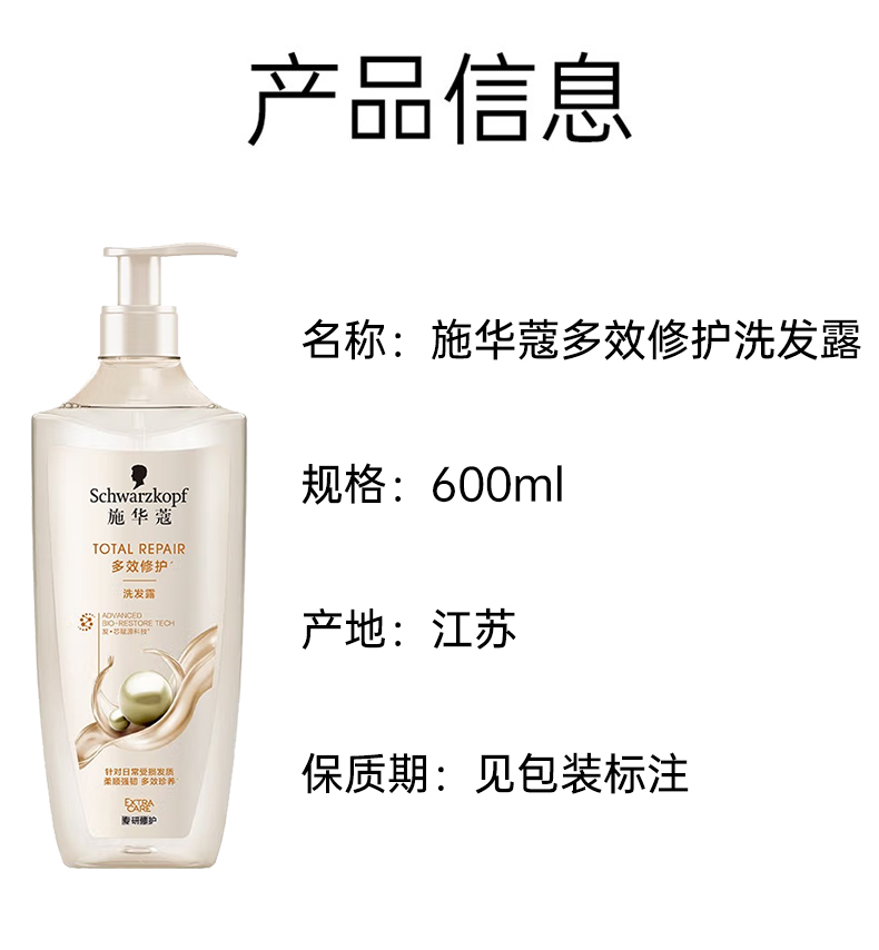 商品名称:Schwarzkopf/施华蔻多效修护洗发露600ml