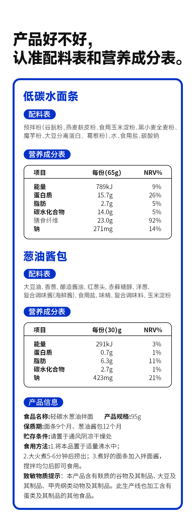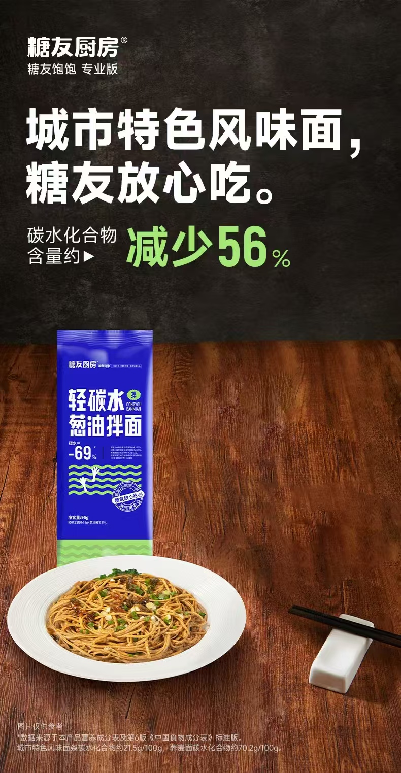商品名称:糖友厨房轻碳水葱油拌面95g*5袋