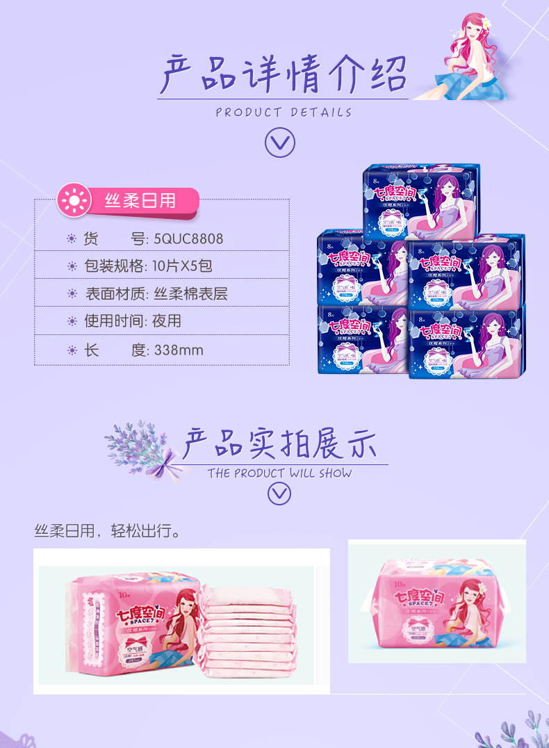 商品名称:Space7/七度空间优雅系列超薄夜用40片ZTA0001389+5QUC8808 新老包装随机不接受指定