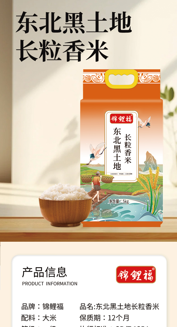 商品名称:锦鲤福东北黑土地长粒香米5kg