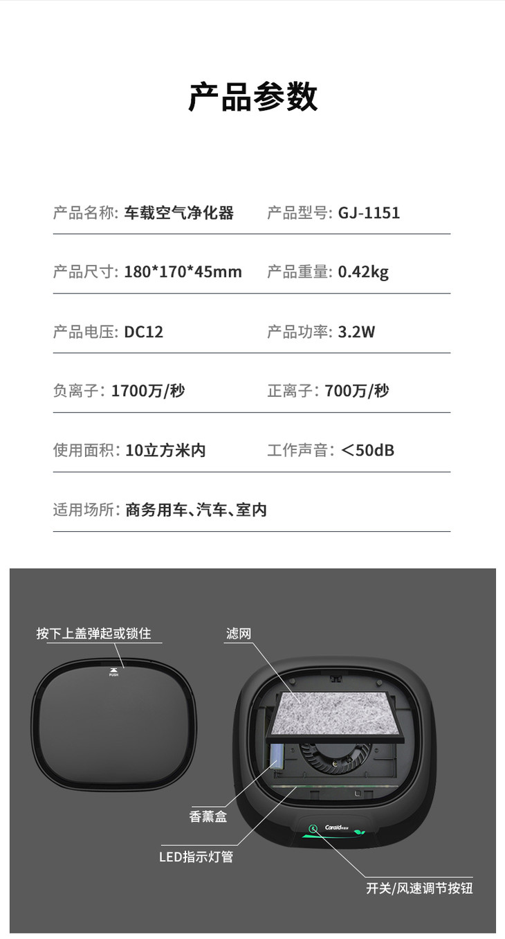 商品名称:车管家车载净化器负离子氧吧去PM2.5除雾霾除尘汽车空气净化除甲醛除异味除烟味GJ-1151黑色-12v车用款