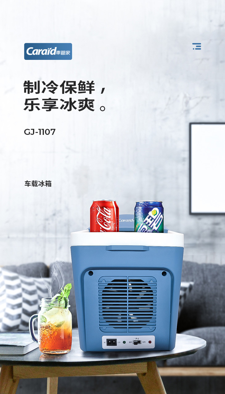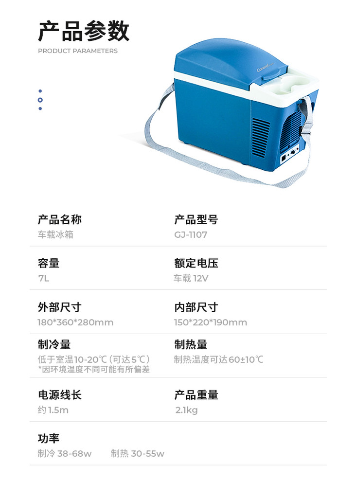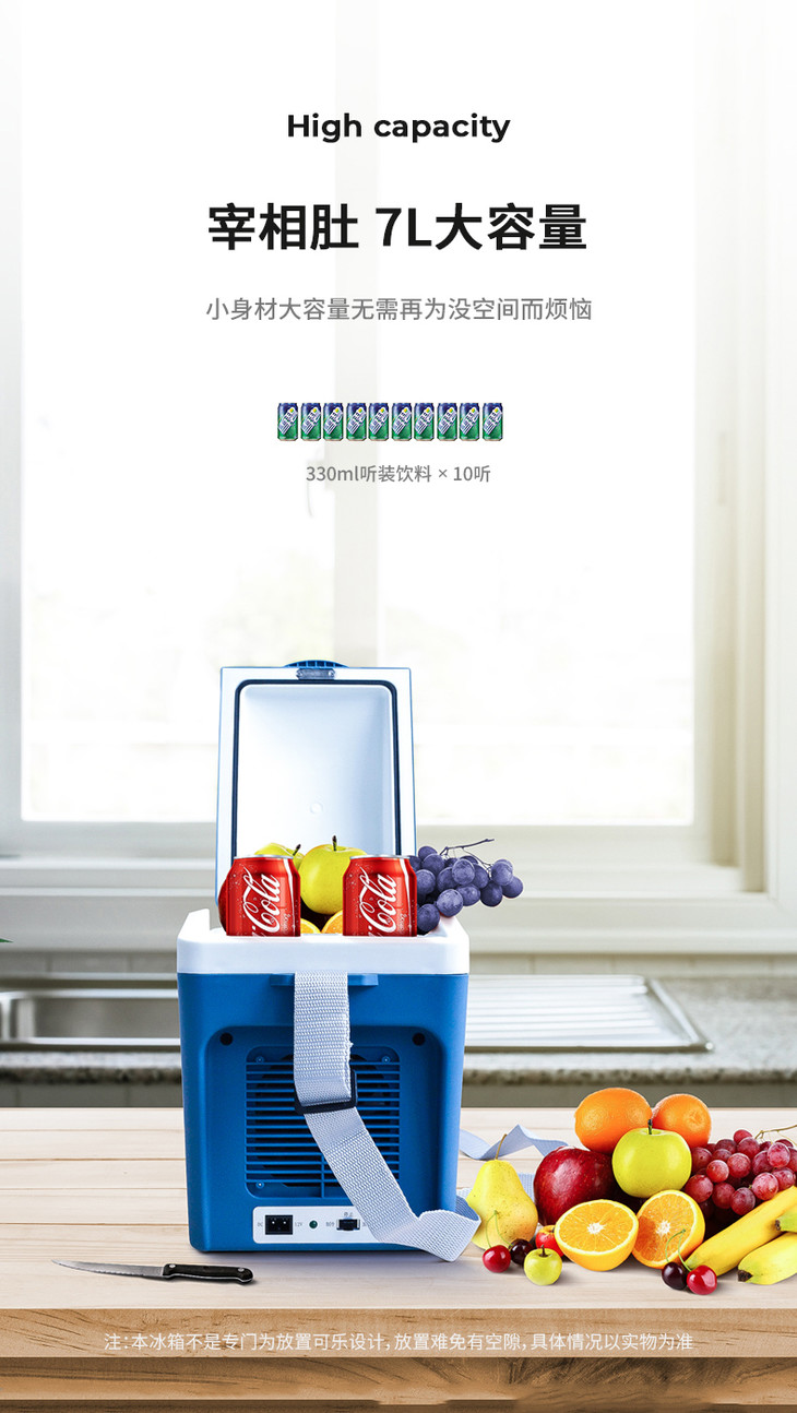 商品名称:车管家车载冰箱7L小型迷你冰箱12V车用冷暖箱制冷加热便携式冷藏箱学生宿舍办公室冰箱GJ-11077L浅蓝-仅车用(12v)