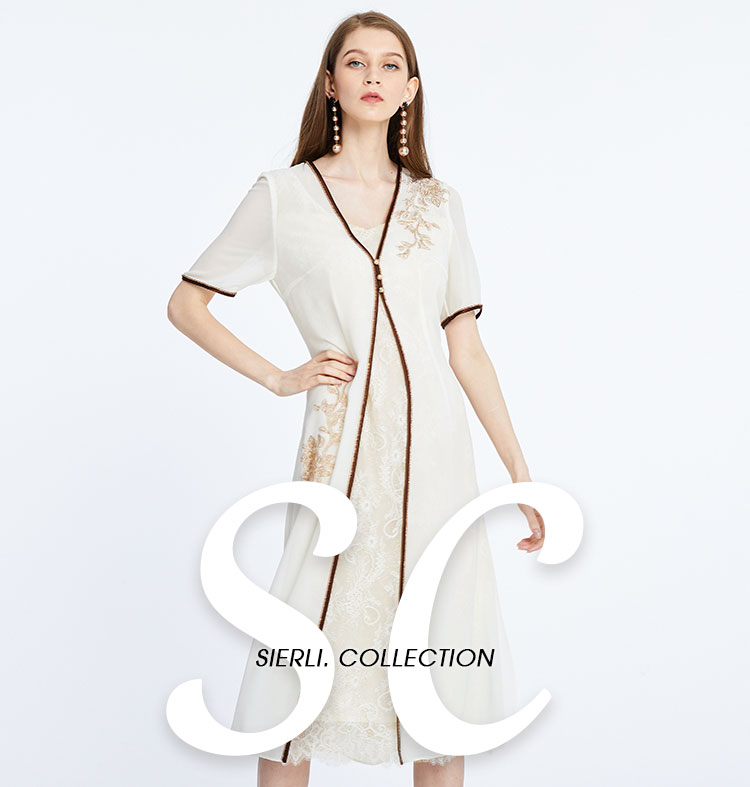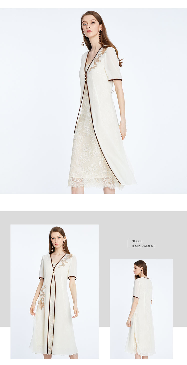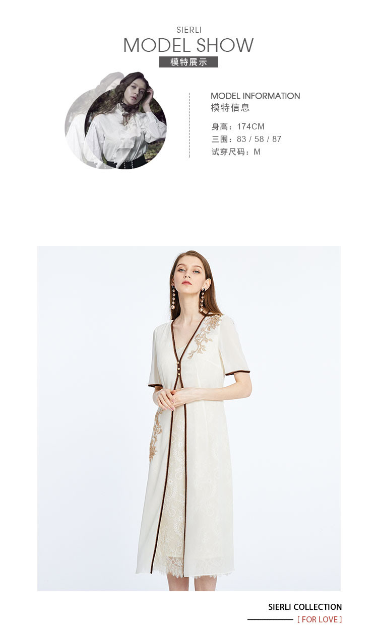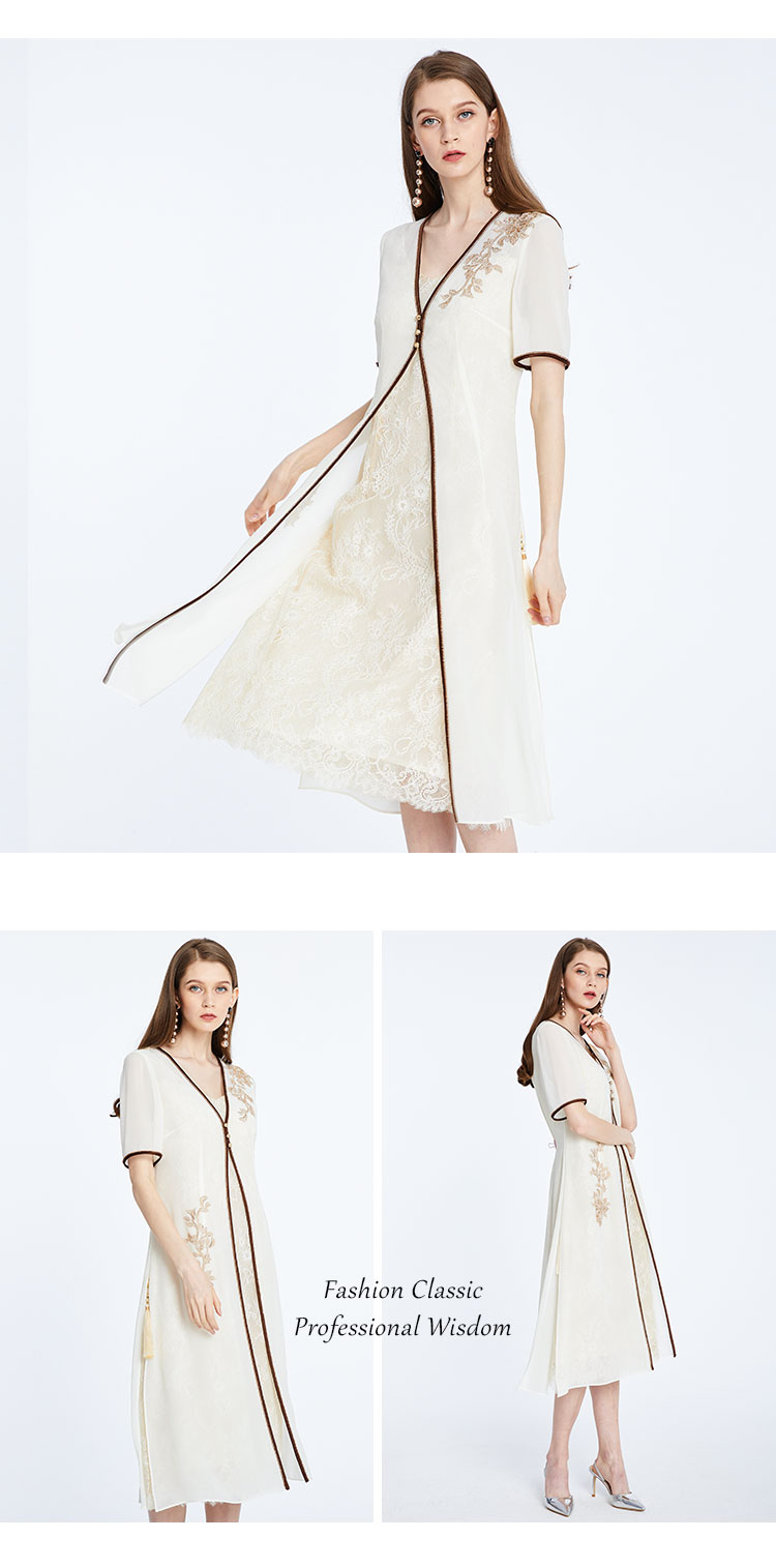 商品名称:商场同款夏季假两件修身V领显瘦中国风连衣裙 700447