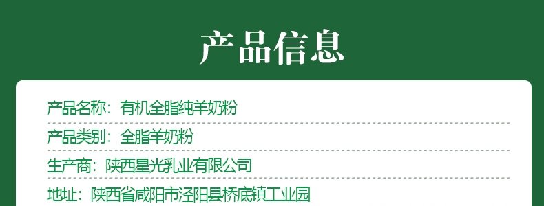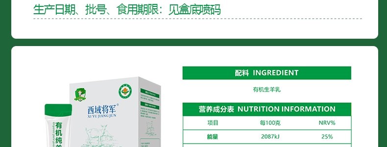 商品名称:西域将军 有机全脂纯羊奶粉 350g