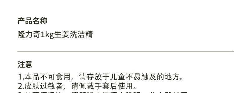 商品名称:隆力奇 生姜洗洁精 1kg