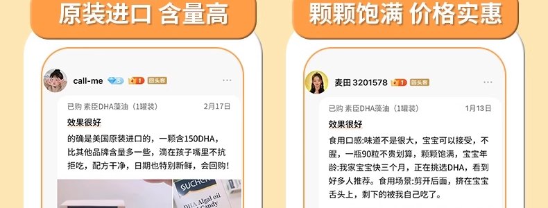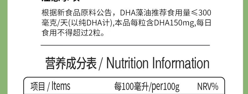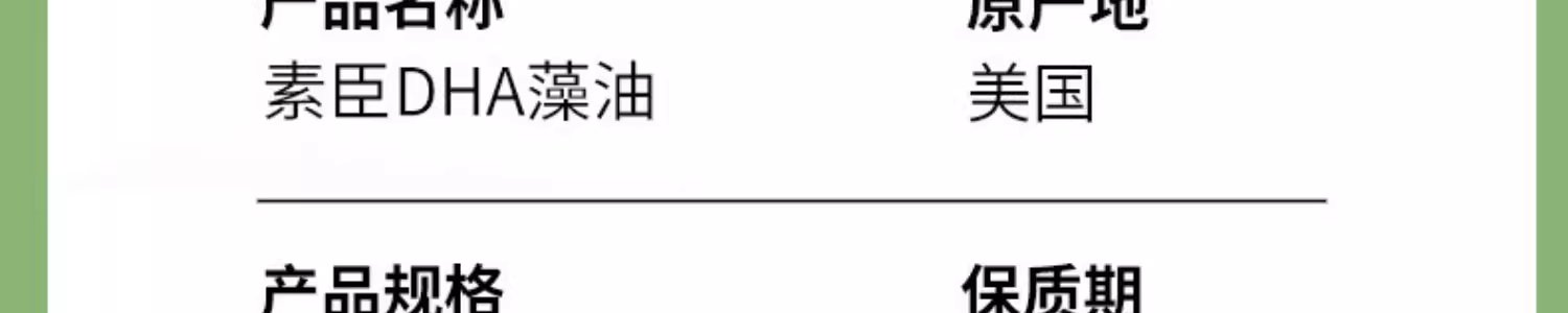 商品名称:素臣(SUCHEN) 婴幼儿DHA海藻油软胶囊 90粒
