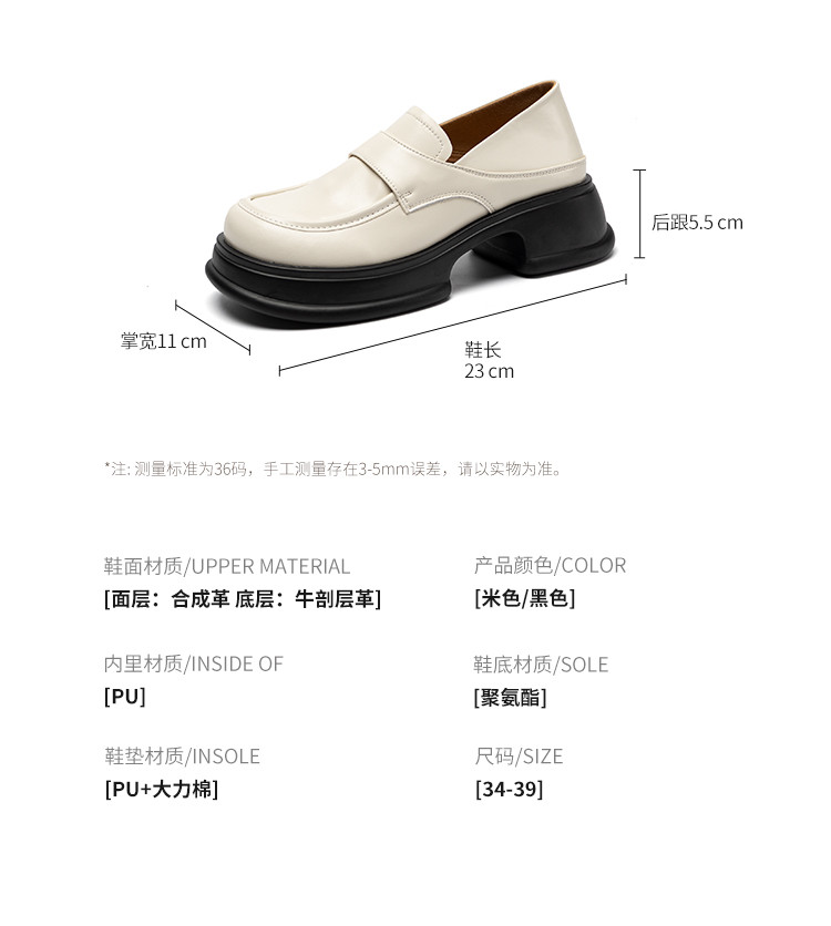 商品名称:【秒高5.5】学院风春秋款小皮鞋女一脚蹬女鞋厚底乐福鞋女单鞋 629440