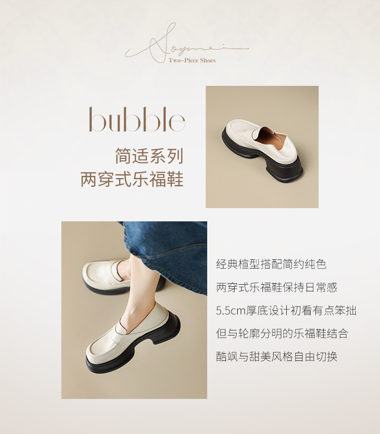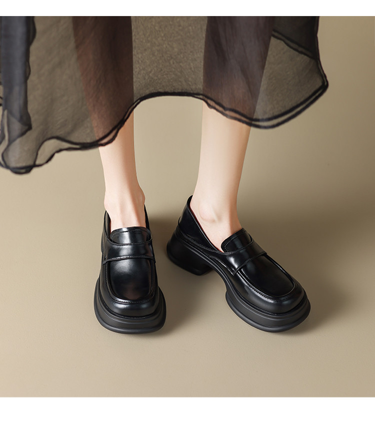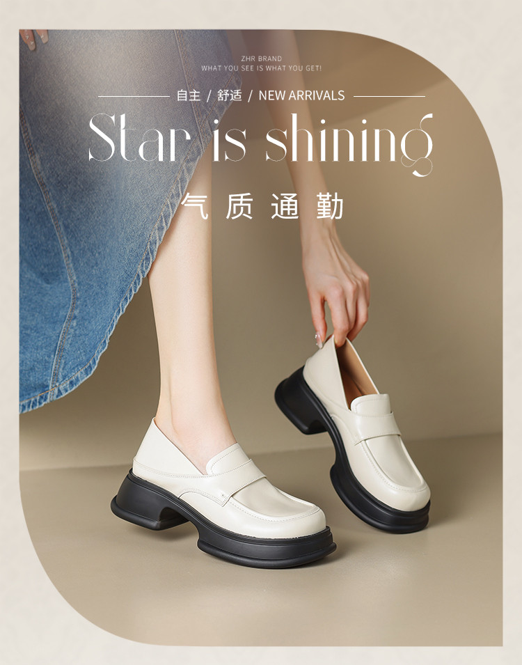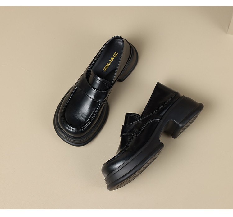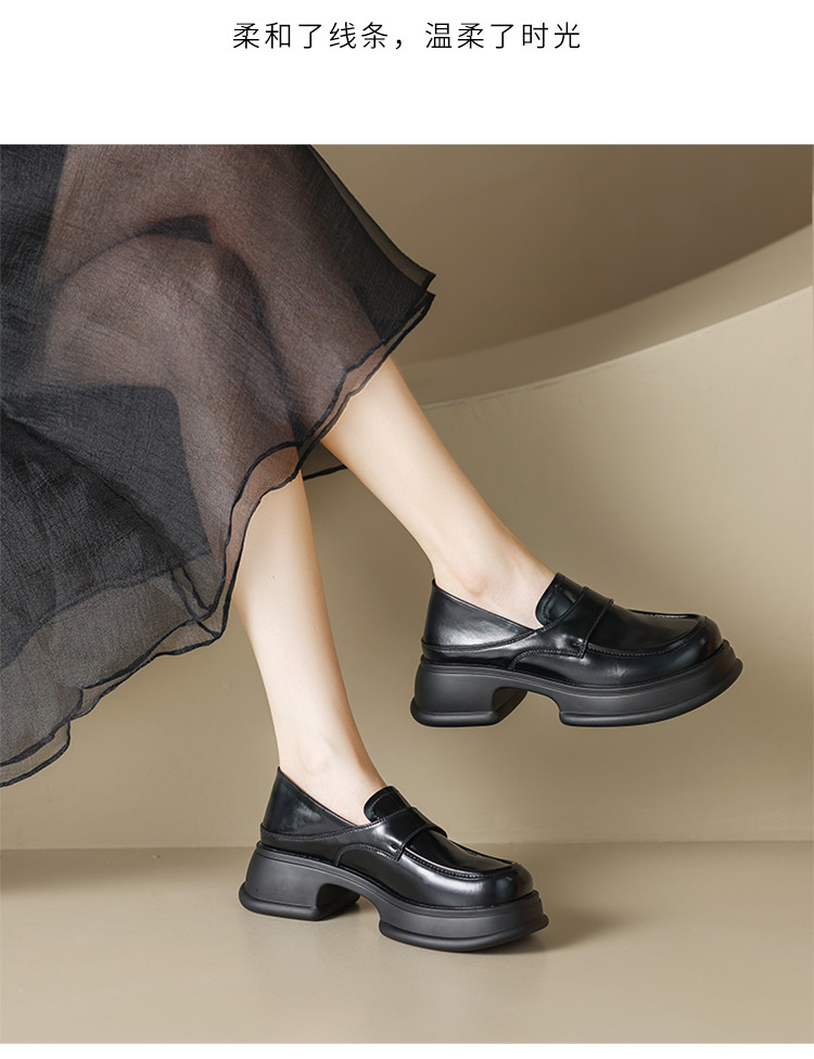 【秒高5.5】学院风春秋款小皮鞋女一脚蹬女鞋厚底乐福鞋女单鞋 629440