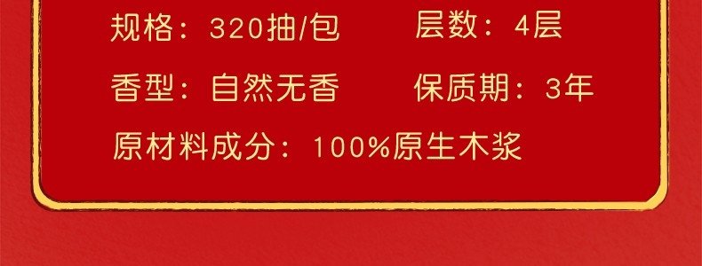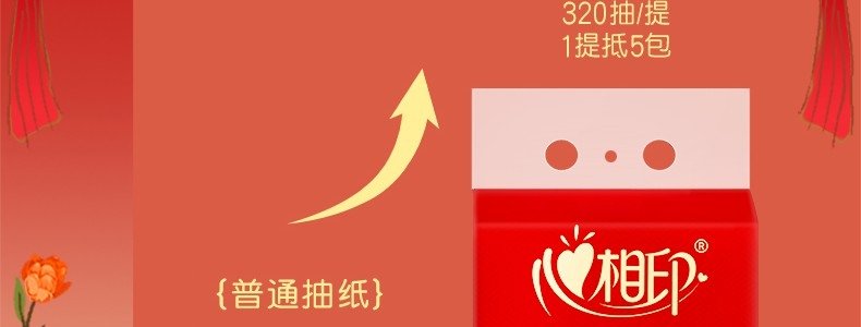 商品名称:心相印 云感四层悬挂式提装面巾纸 4提*320抽/提