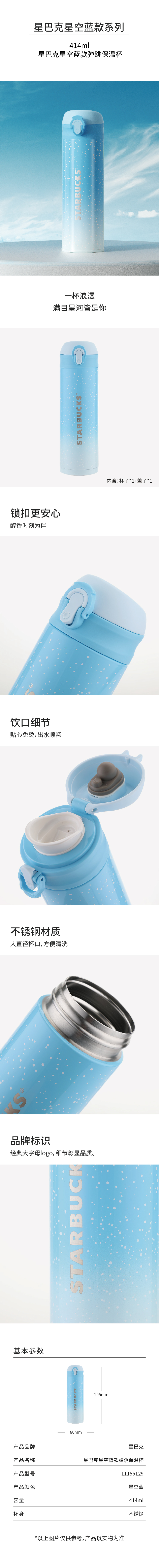 商品名称:STARBUCKS/星巴克414毫升星空蓝弹跳保温杯-星空蓝11155129