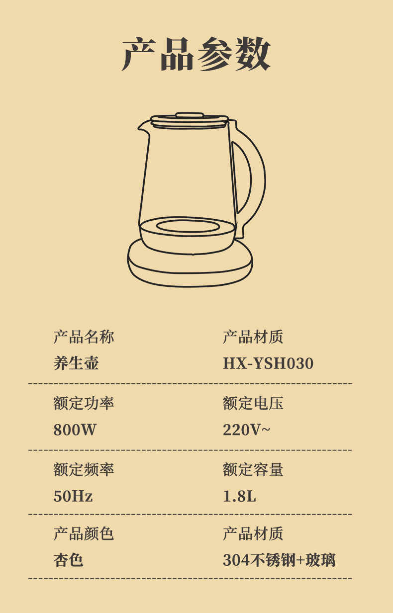 商品名称:Fire elephants/火象1.8升养生壶HX-YSH030