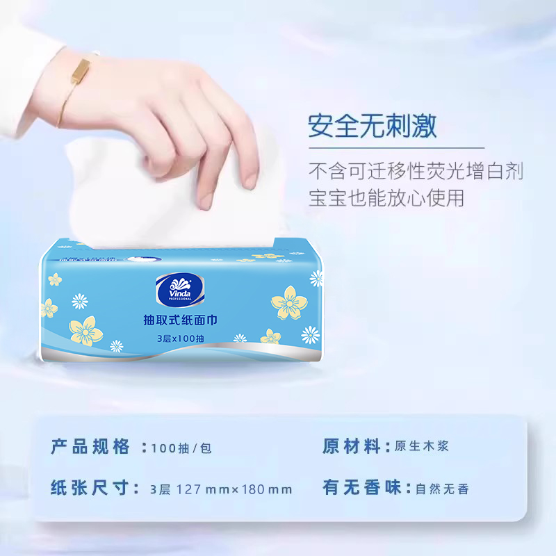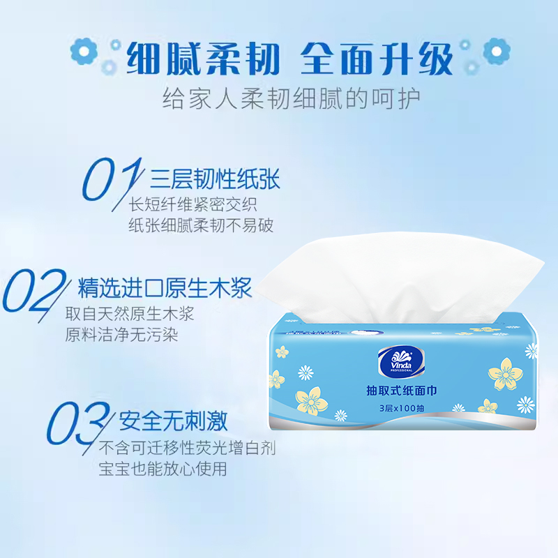 商品名称:Vinda/维达细韧小雏菊抽纸3层100抽3包*8提