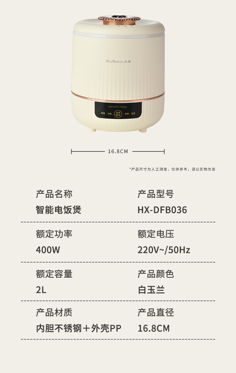 商品名称:Fire elephants/火象2升智能电饭煲HX-DFB036