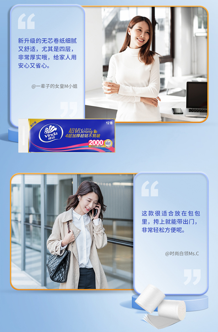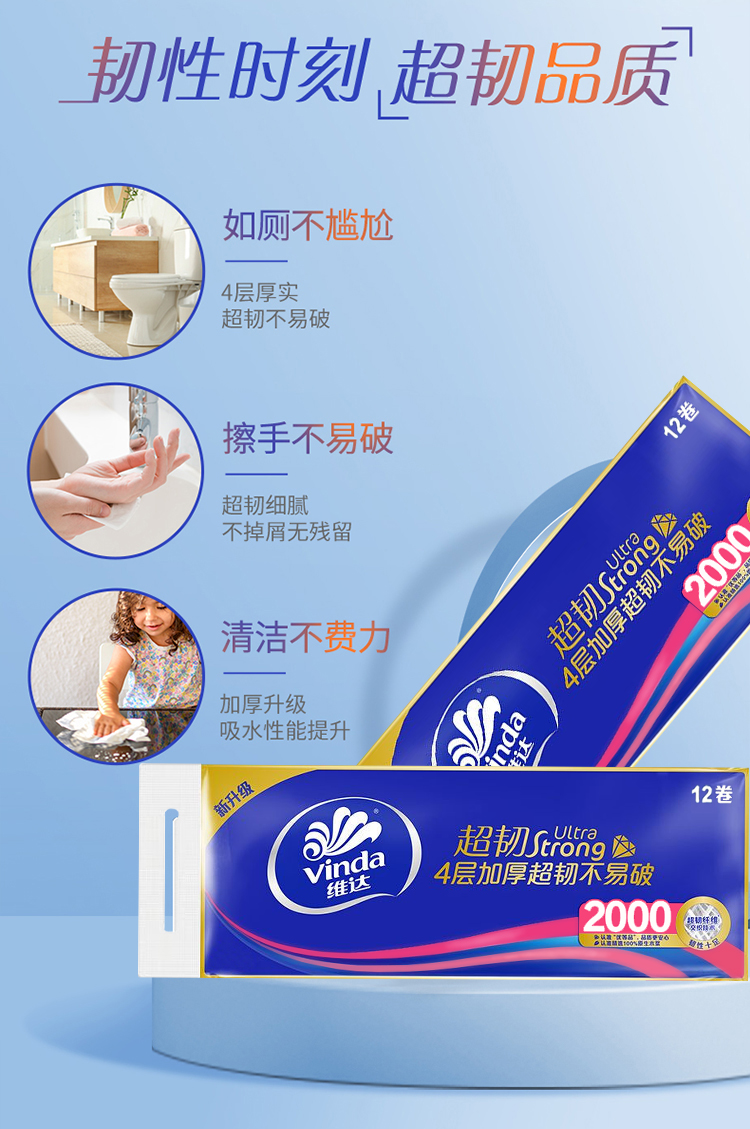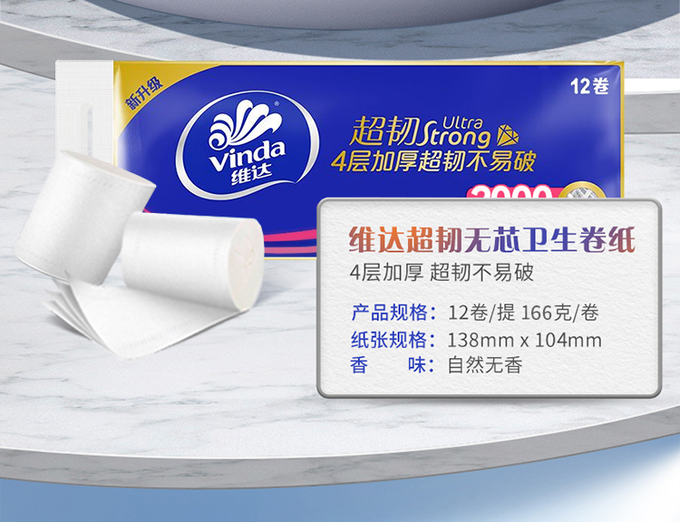 商品名称:Vinda/维达超韧无芯卫生卷纸12卷*166g*2提