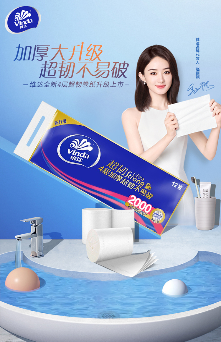 Vinda/维达超韧无芯卫生卷纸12卷*166g*2提