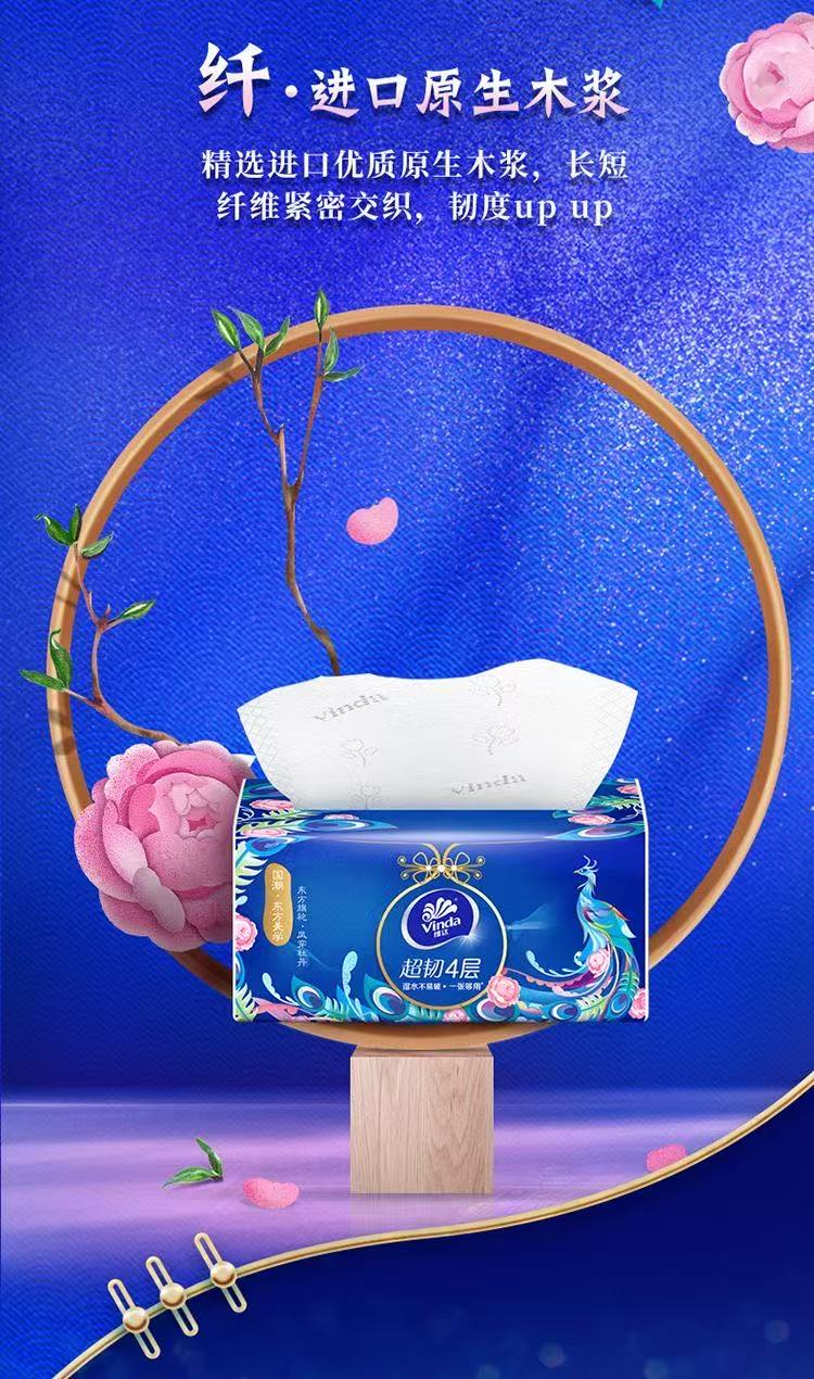 商品名称:Vinda/维达国潮4层抽纸6包*3提