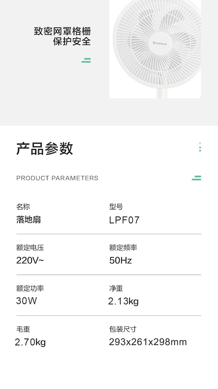 商品名称:Airmate/艾美特落地扇LPF07