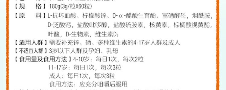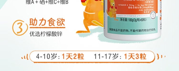 商品名称:澳洲 瑞思(Swisse)斯维诗儿童锌硒多种维生素凝胶糖果 60粒