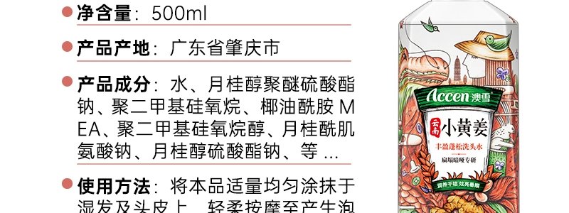 商品名称:澳雪(accen)小黄姜洗护沐礼盒(洗发水500ml+护发素300ml+沐浴露300ml)