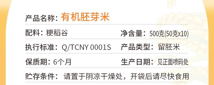 商品名称:裕道府 有机胚芽米 500g
