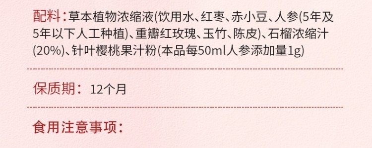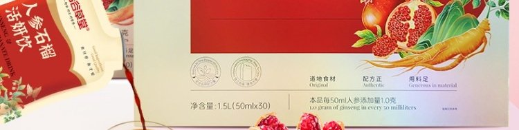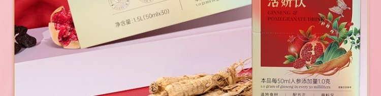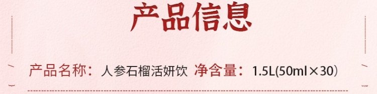 商品名称:若谷草堂 人参石榴活妍饮 1500ml/盒(50ml*30袋)