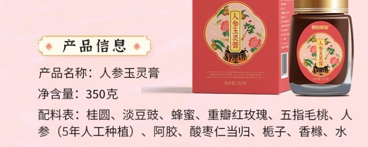 商品名称:若谷草堂 人参玉灵膏 350g/瓶