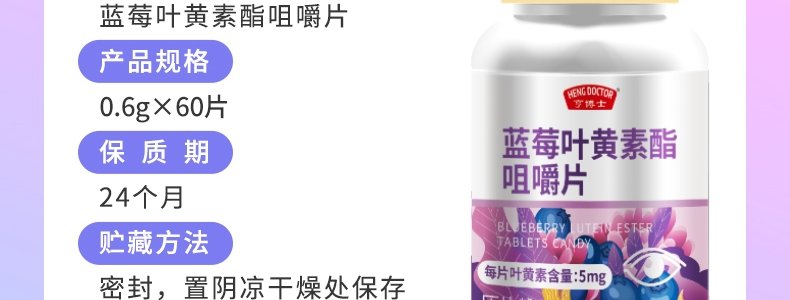 商品名称:亨博士 蓝莓叶黄素咀嚼片 60片*3瓶
