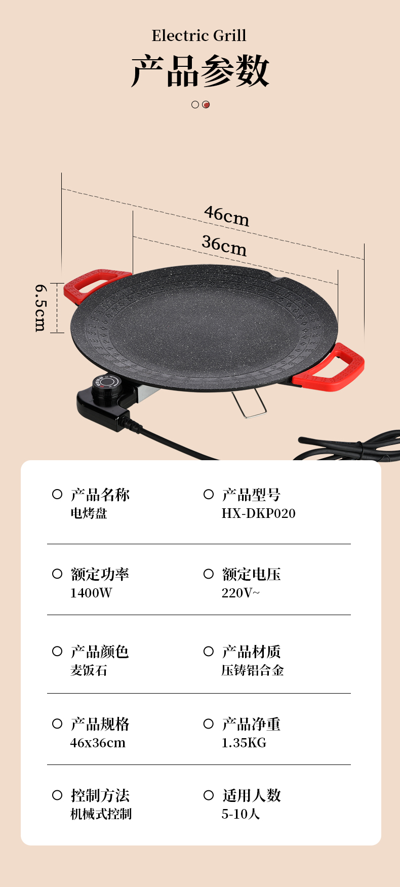 商品名称:Fire elephants/火象电烤盘HX-DKP020