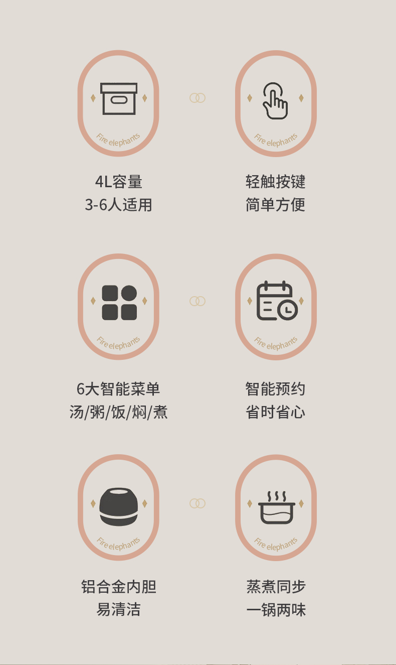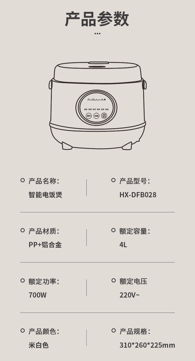 商品名称:Fire elephants/火象4升智能电饭煲HX-DFB028