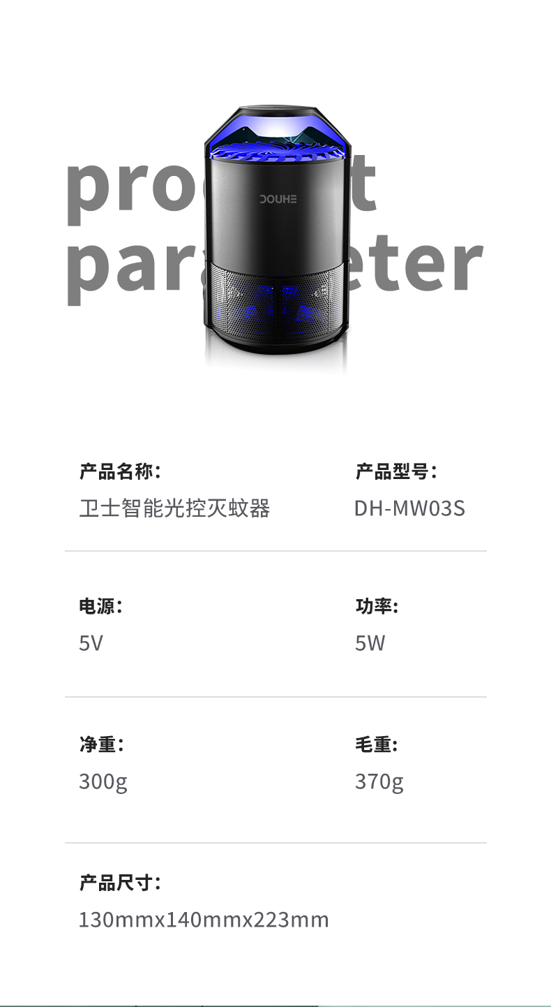 商品名称:DOUHE/斗禾卫士智能光控灭蚊器DH-MW03S