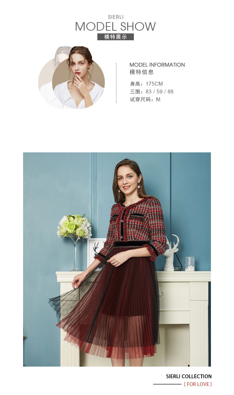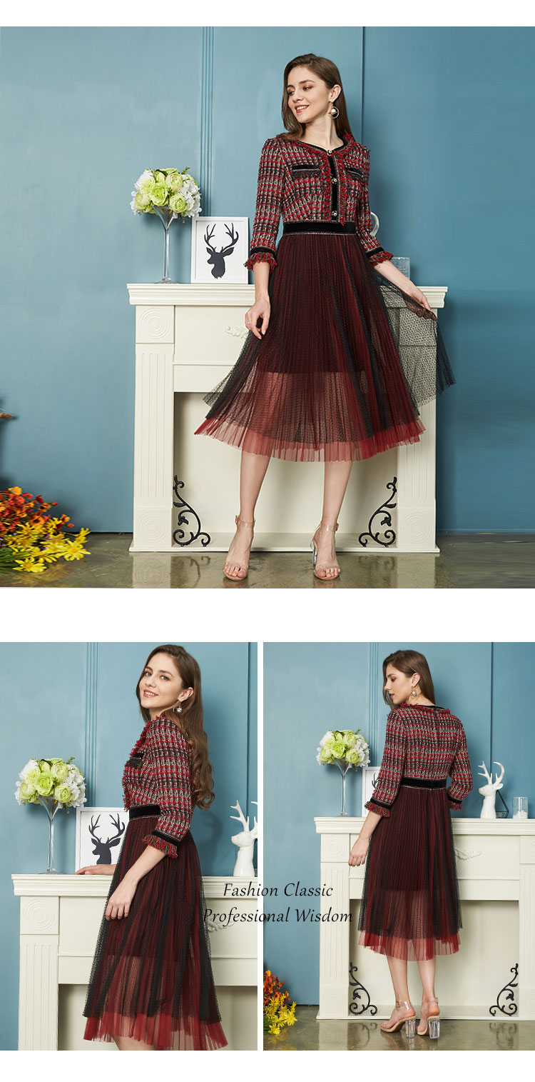 商品名称:商场同款秋季优雅V领女人味流苏边网纱连衣裙 854815