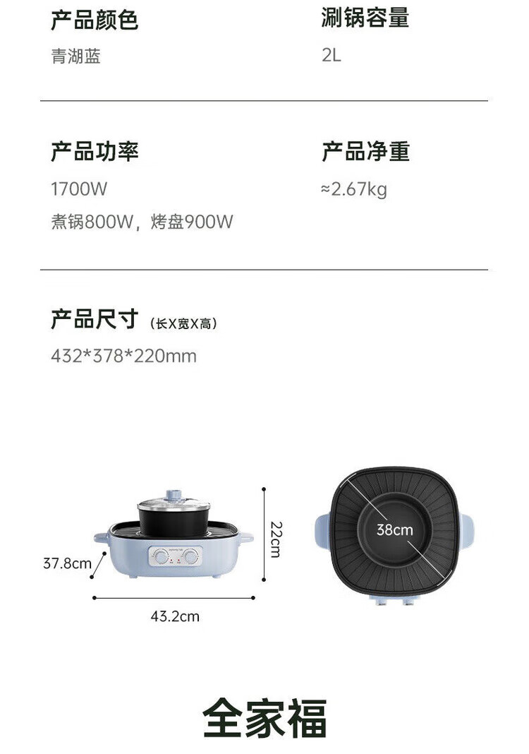 商品名称:Joyoung/九阳2升烤涮一体锅HG20-G581
