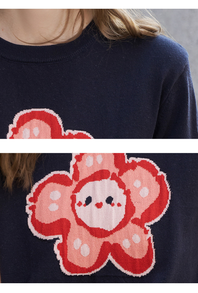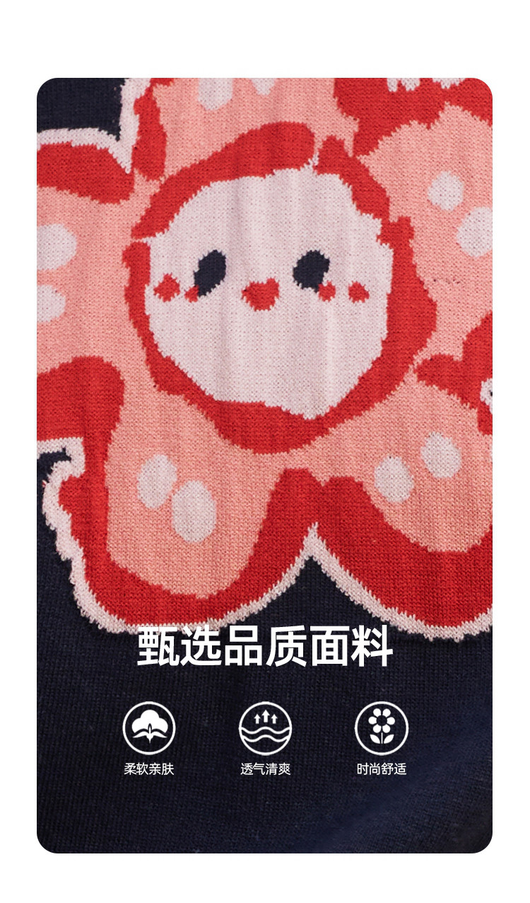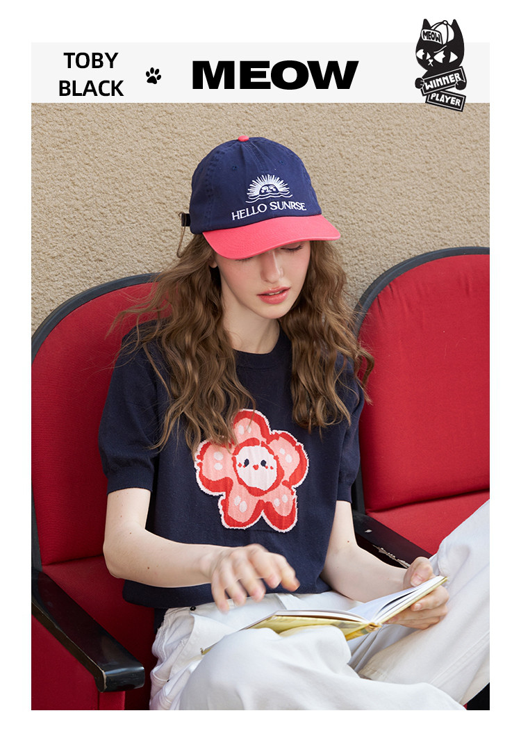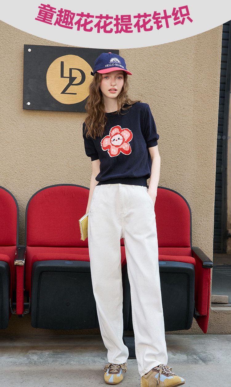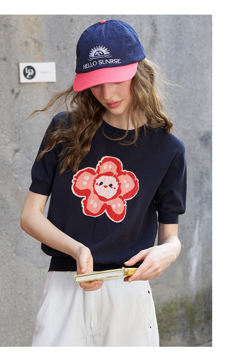 商品名称:复古圆领童趣提花针织短袖上衣2025夏季休闲百搭女式针织衫 948445