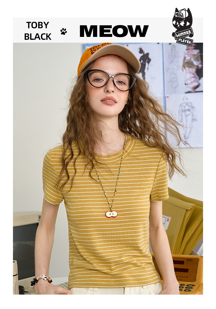 条纹圆领修身显瘦短袖上衣2025夏季百搭休闲女式T恤 962589