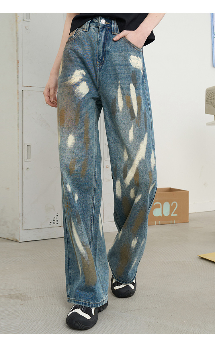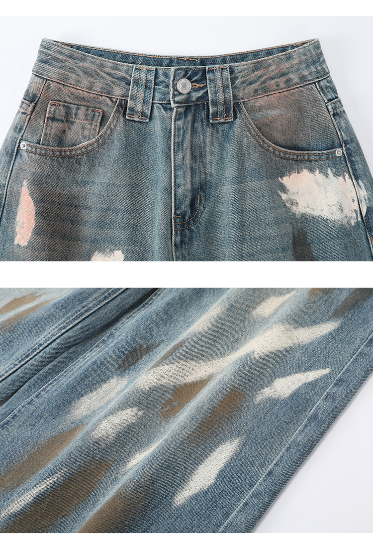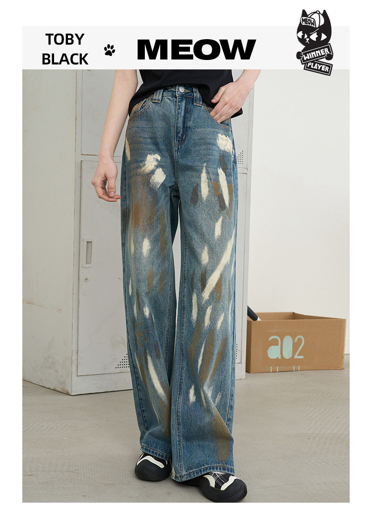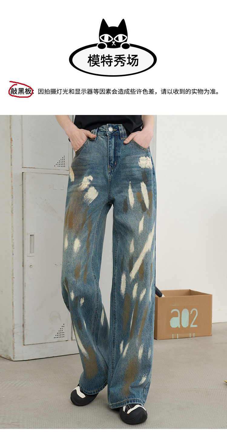 商品名称:美式复古涂鸦喷漆脏脏直筒裤2025夏季个性百搭女式牛仔裤 966685