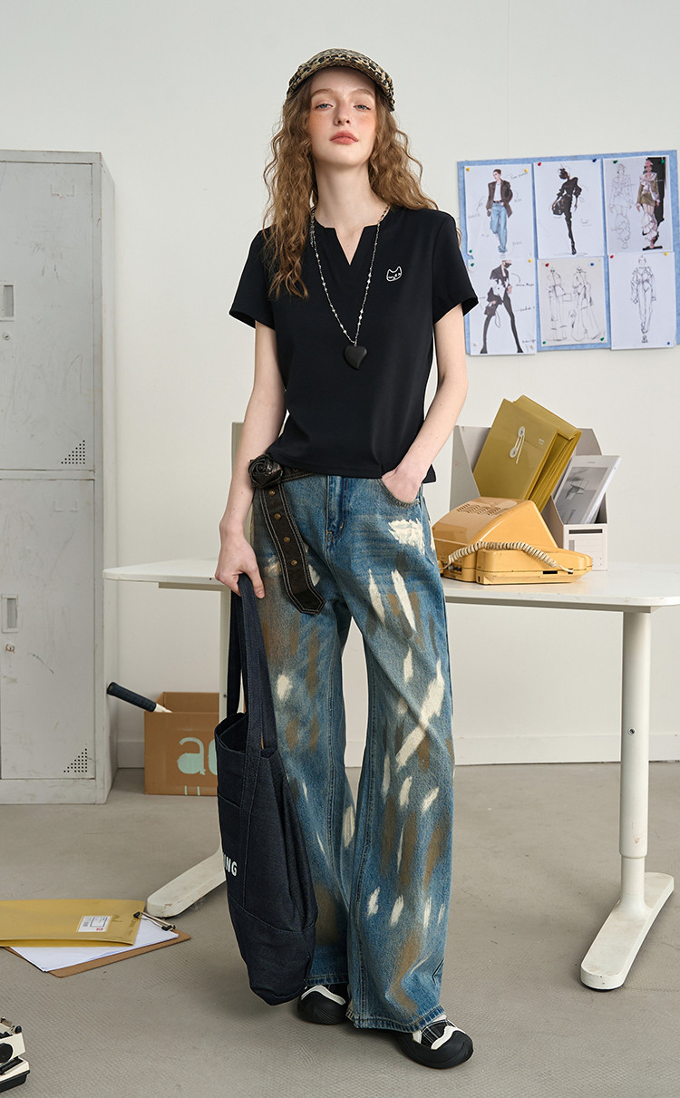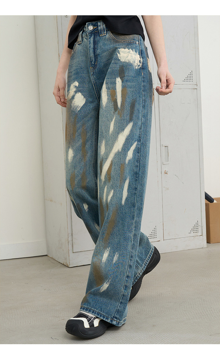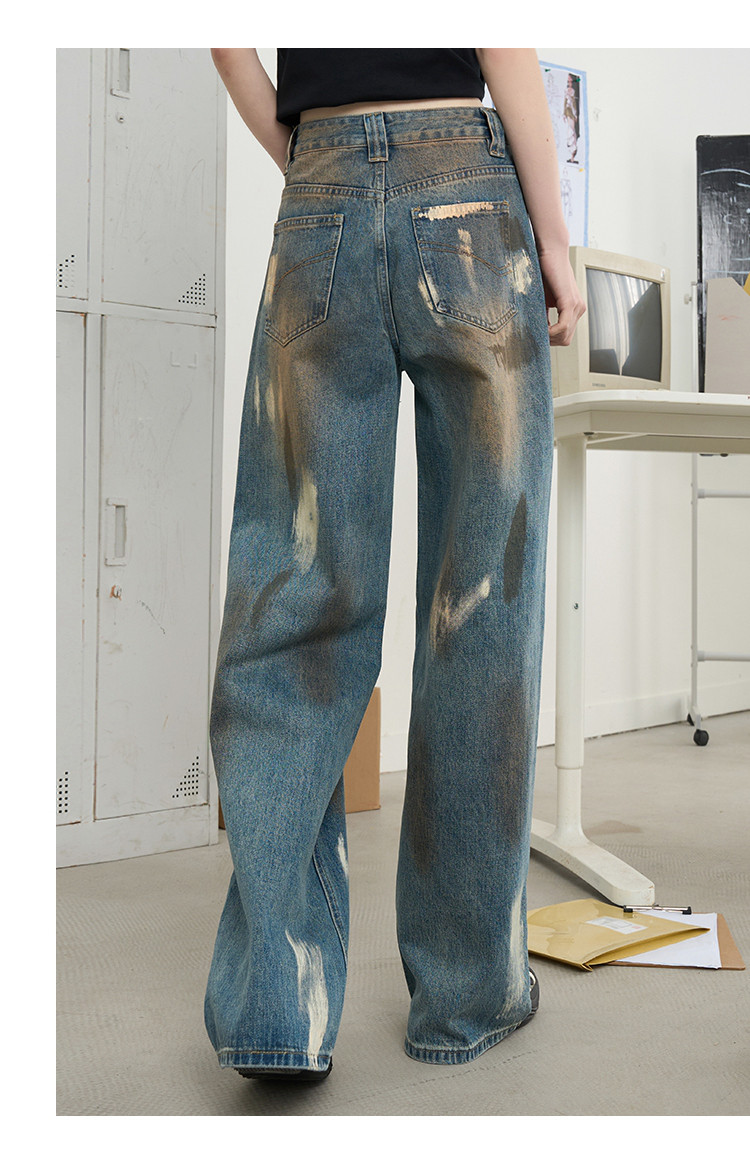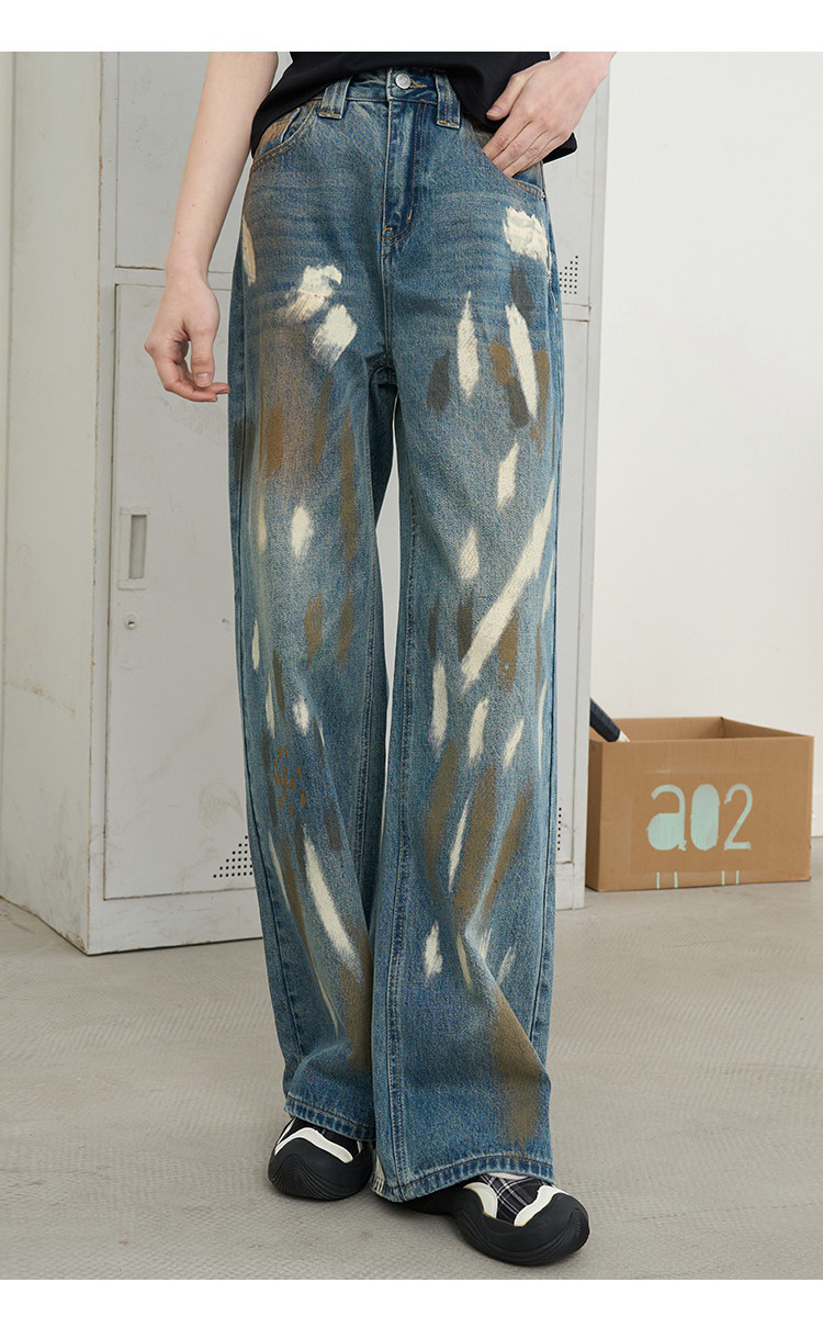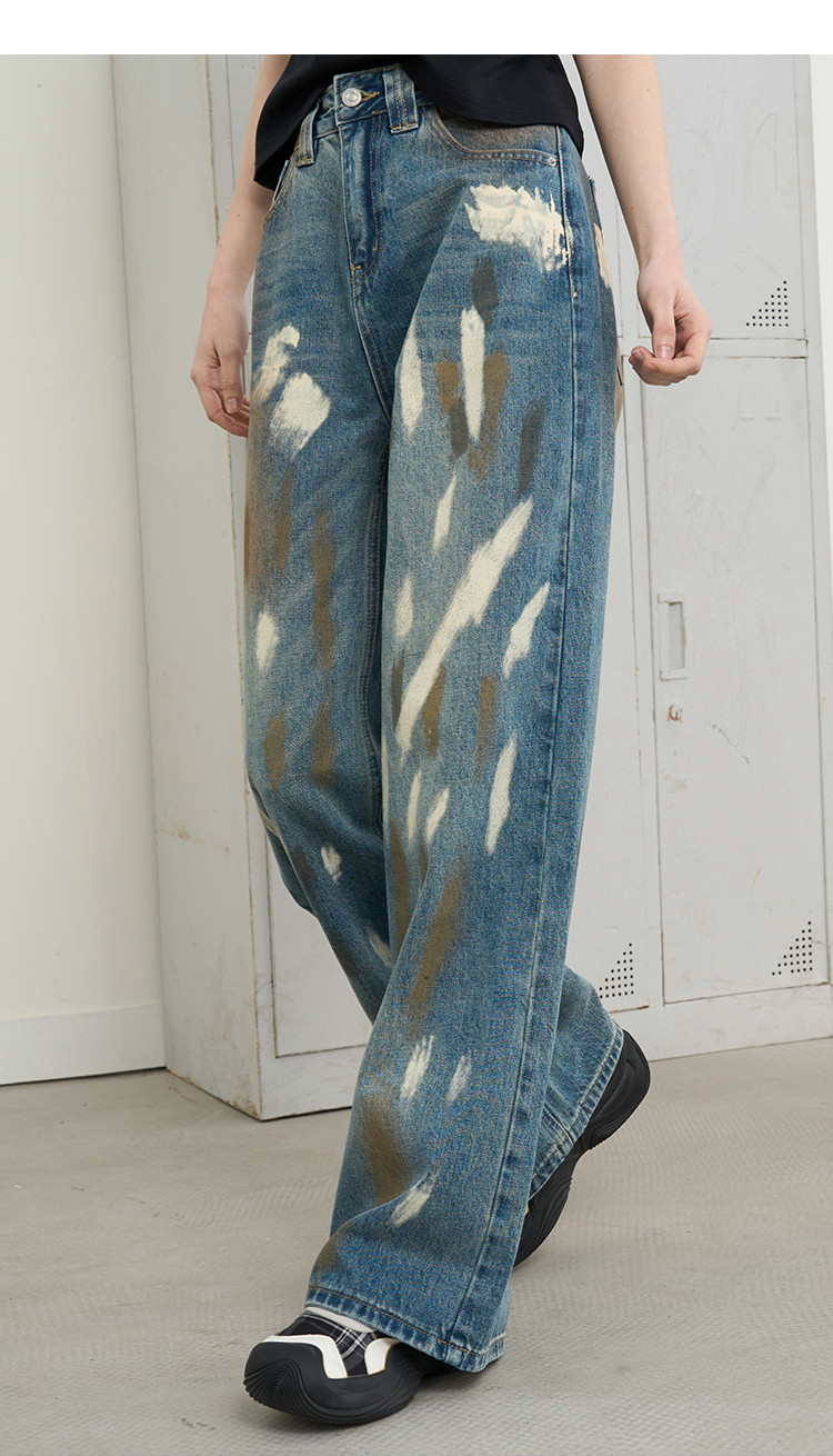 商品名称:美式复古涂鸦喷漆脏脏直筒裤2025夏季个性百搭女式牛仔裤 966685