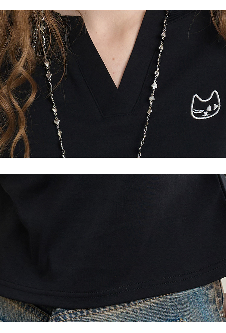 商品名称:气质修身紧身小V领短款上衣2025夏季百搭休闲女式T恤 978973