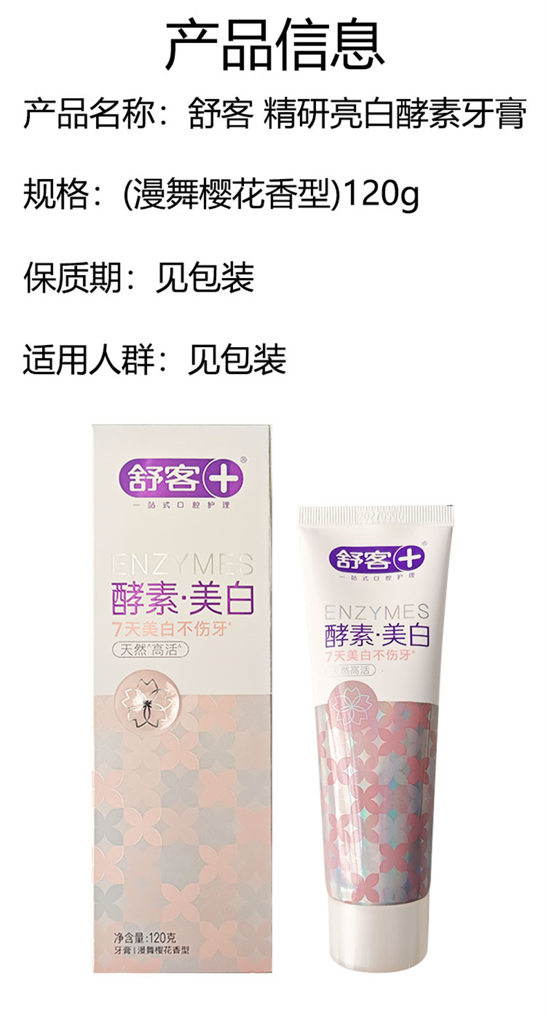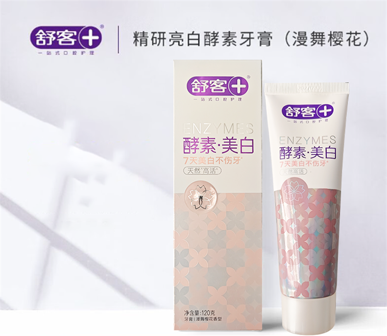 商品名称:Saky/舒客精研亮白酵素牙膏-漫舞樱花香型120g