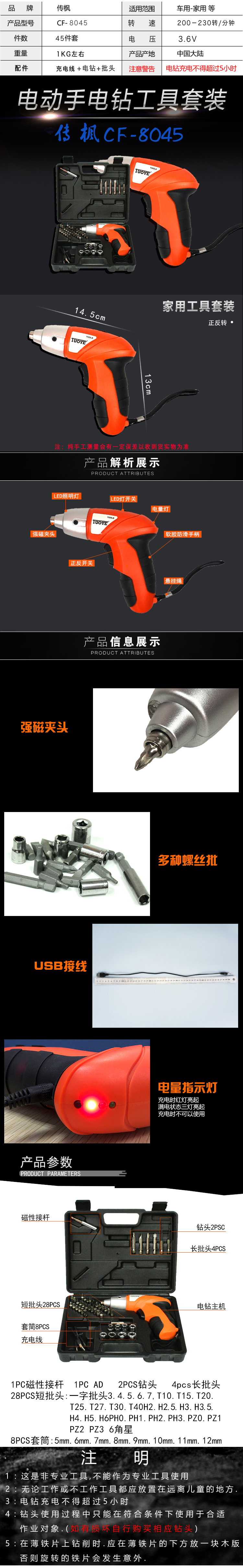 商品名称:CF/传枫电动手电钻工具45件套CF-8045