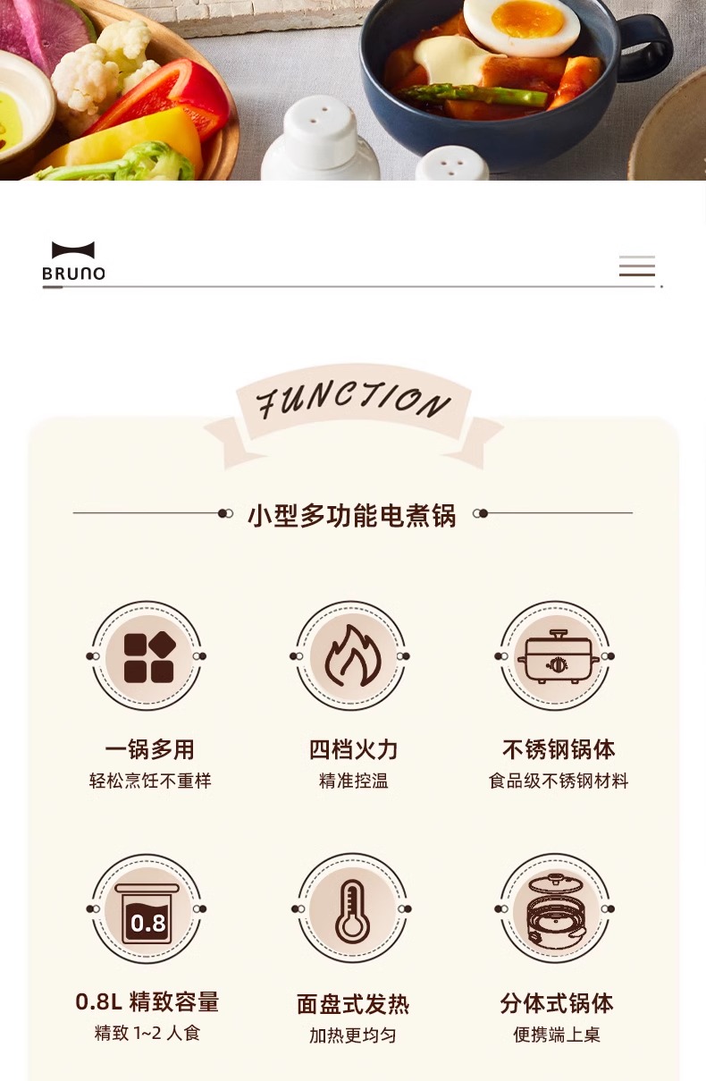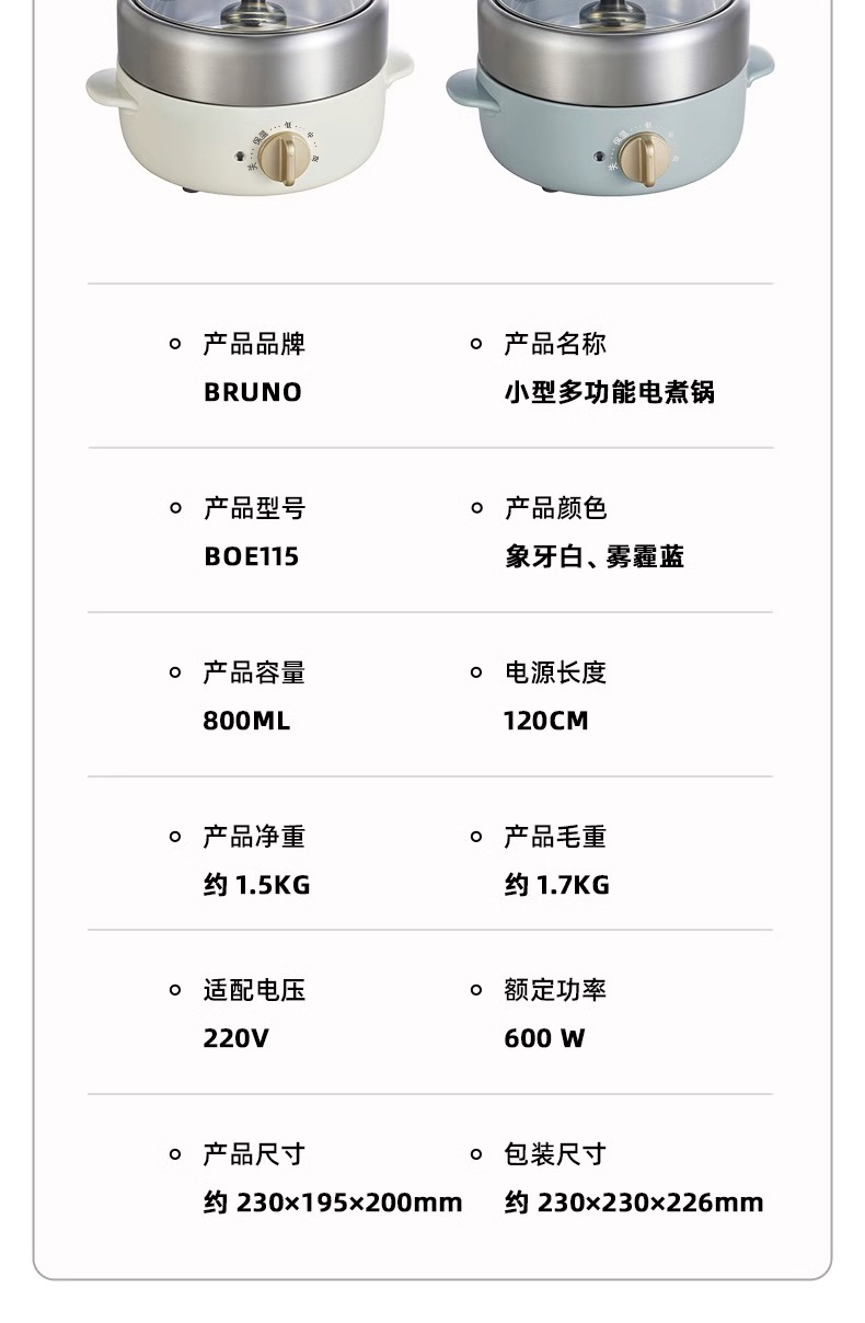 商品名称:BRUNO 800毫升小型多功能电煮锅BOE115