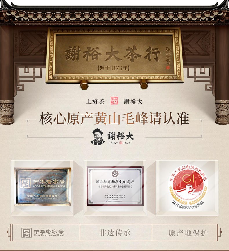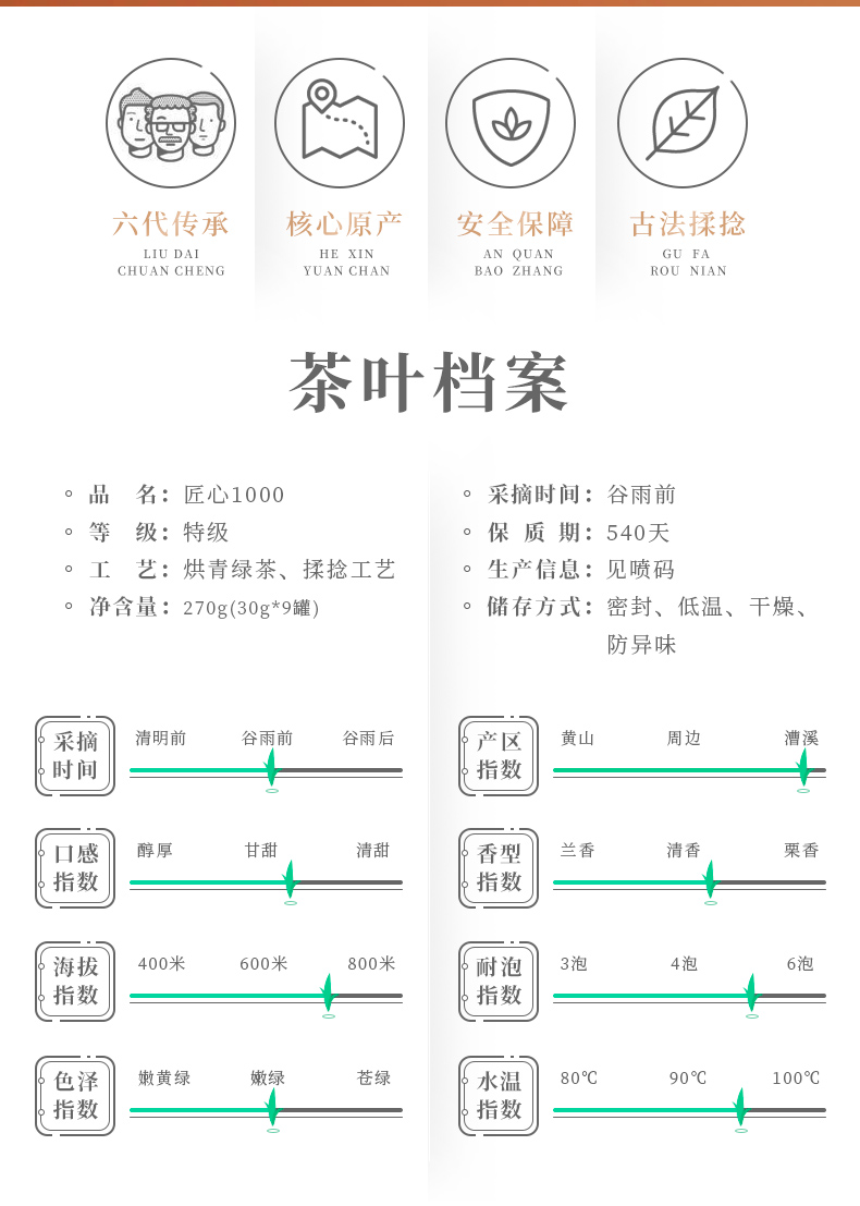 商品名称:谢裕大匠心1000黄山毛峰绿茶礼盒270g