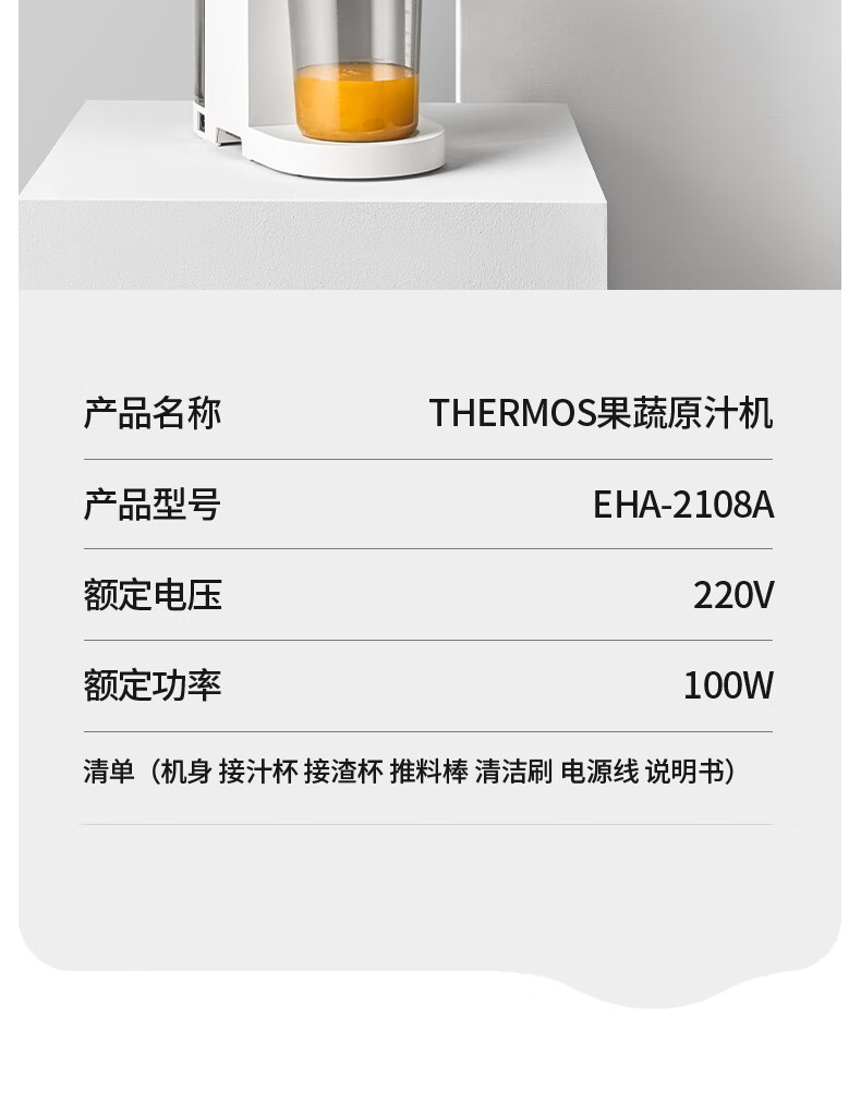 商品名称:THERMOS/膳魔师1.5升立式原汁机EHA-2108A