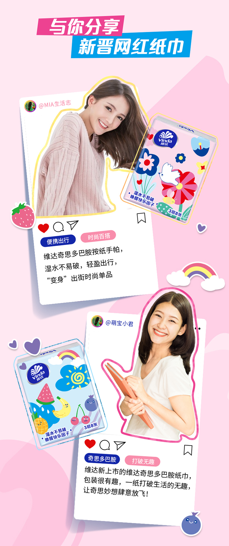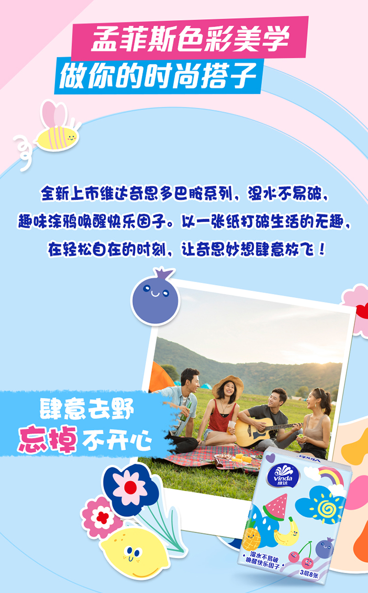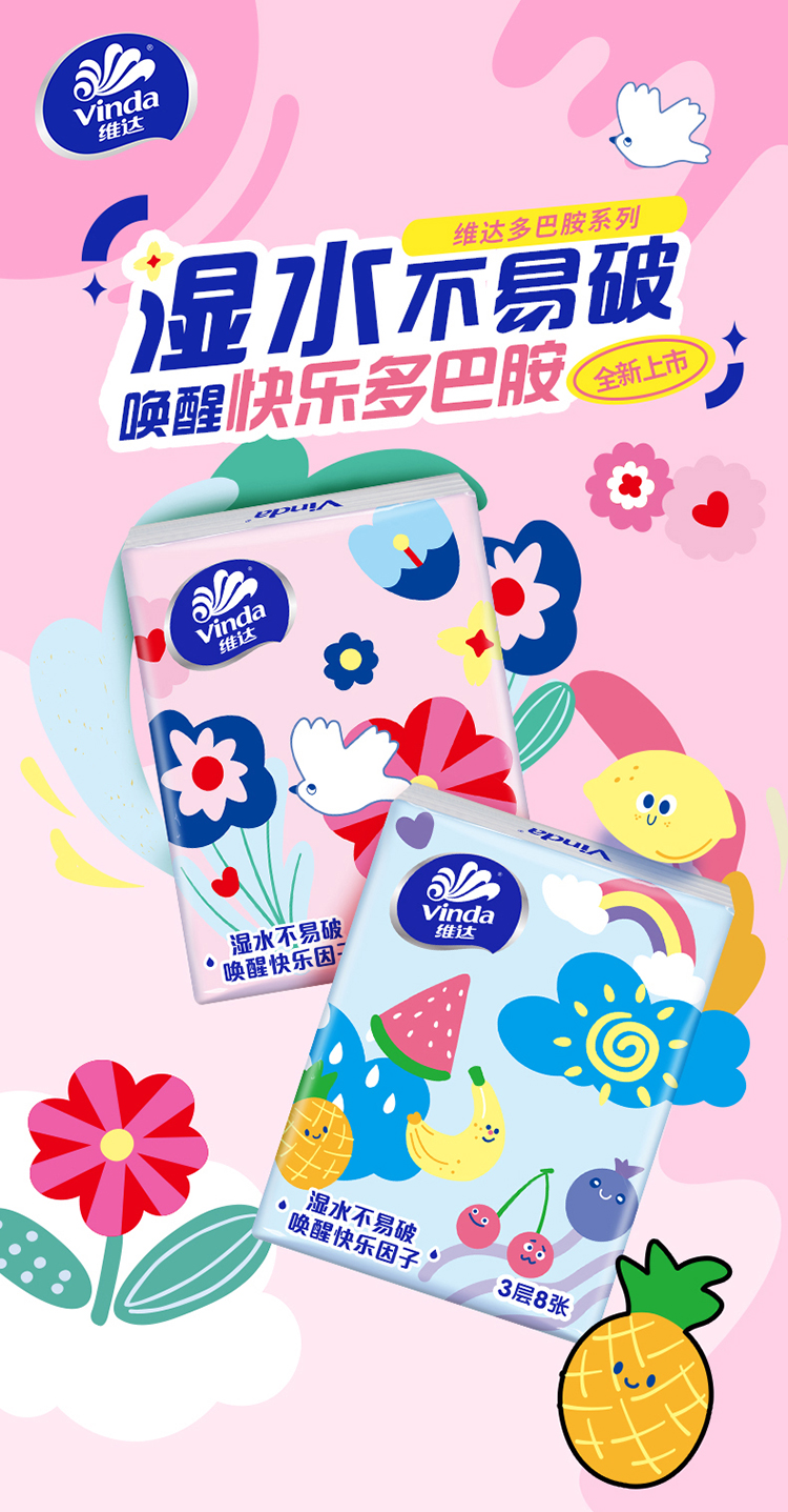Vinda/维达奇思多巴胺手帕纸3层8张10包*10条