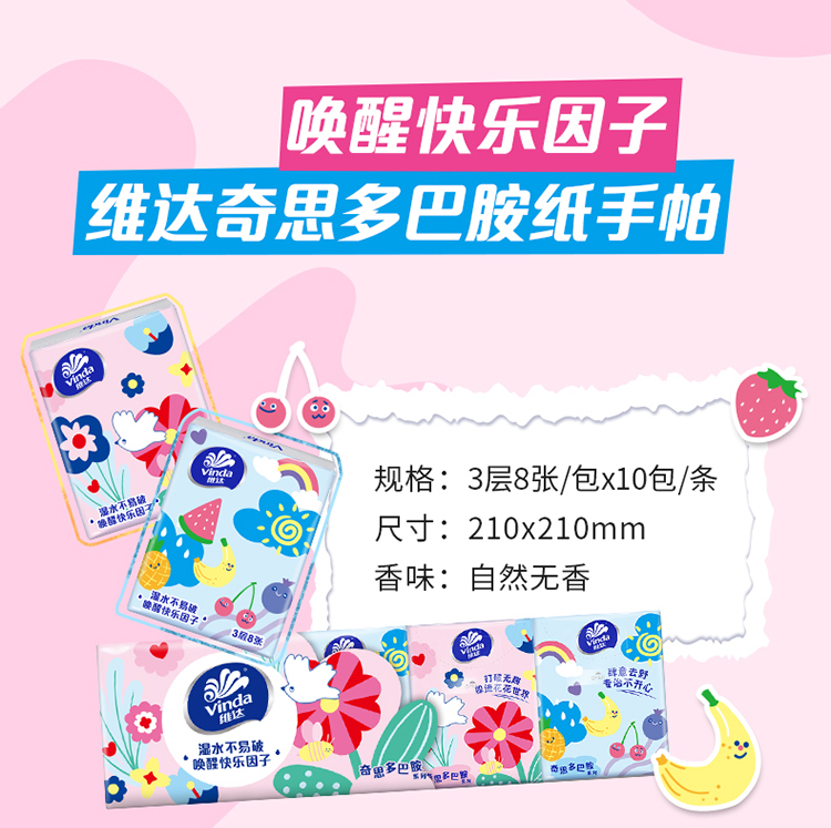 商品名称:Vinda/维达奇思多巴胺手帕纸3层8张10包*10条