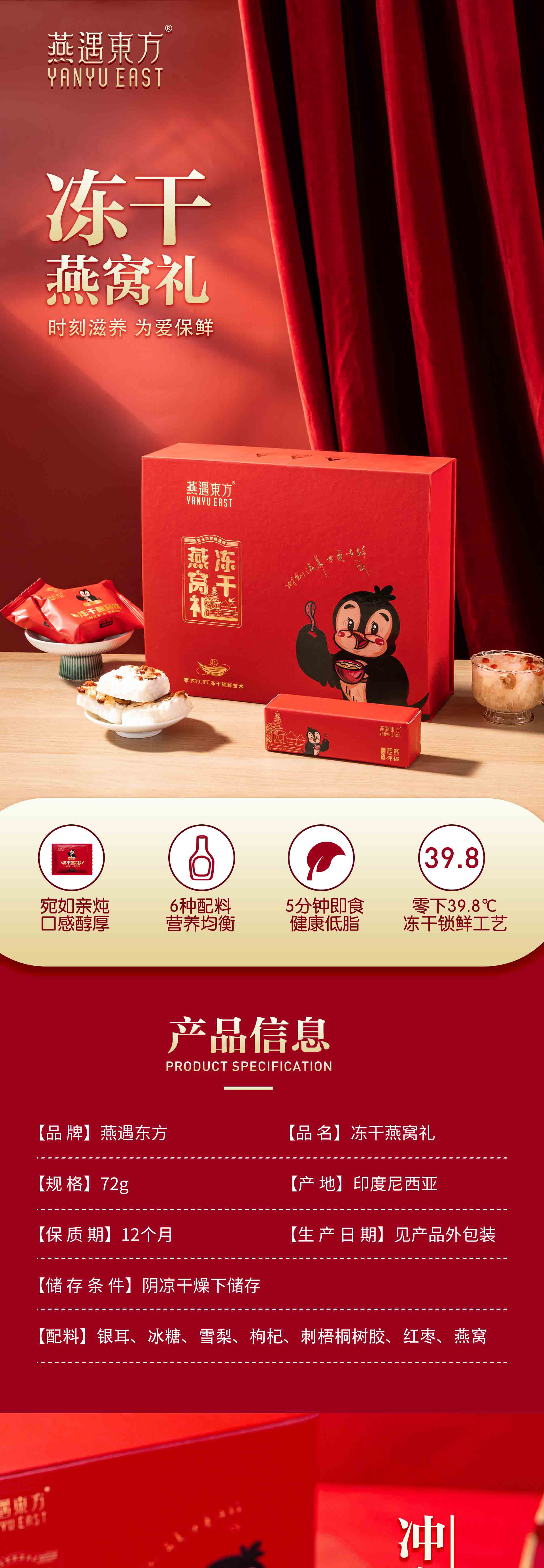 商品名称:燕遇东方印度尼西亚进口冻干燕窝礼礼盒72g