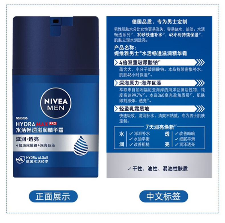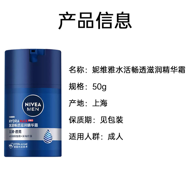 商品名称:妮维雅水活畅透滋润精华霜50g 新旧包装随机不接受指定