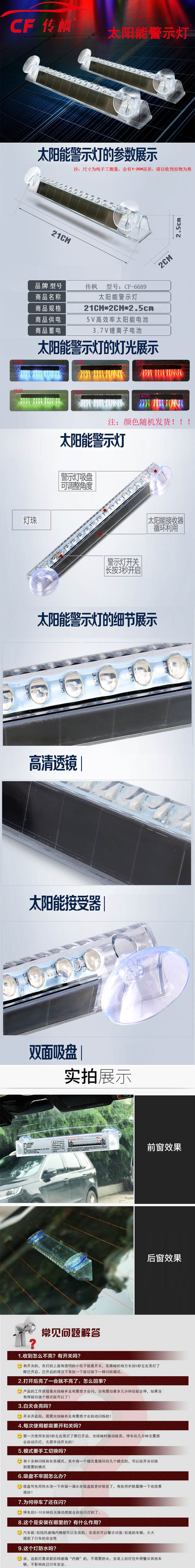 商品名称:CF/传枫汽车太阳能警示灯CF-6689