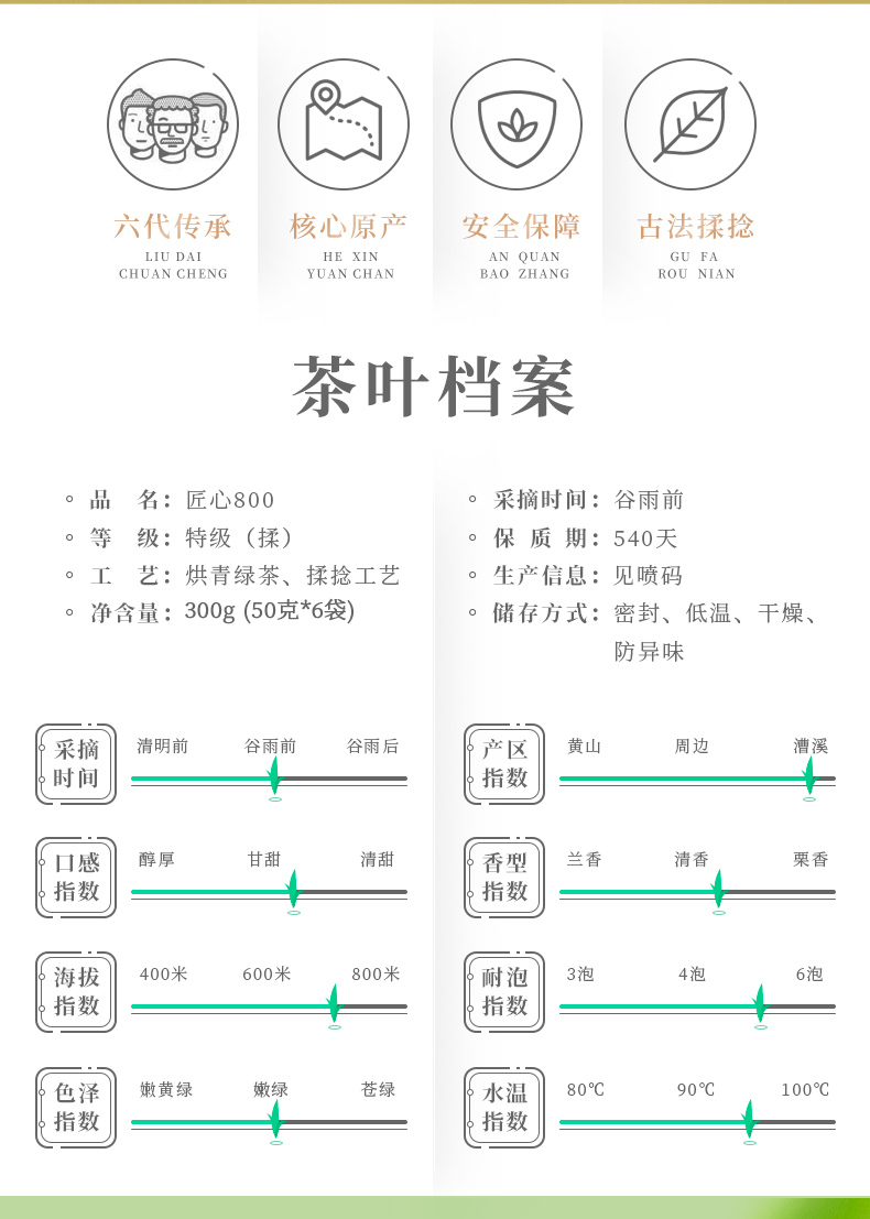 商品名称:谢裕大匠心800黄山毛峰绿茶礼盒300g