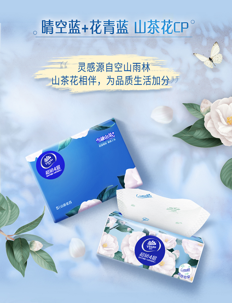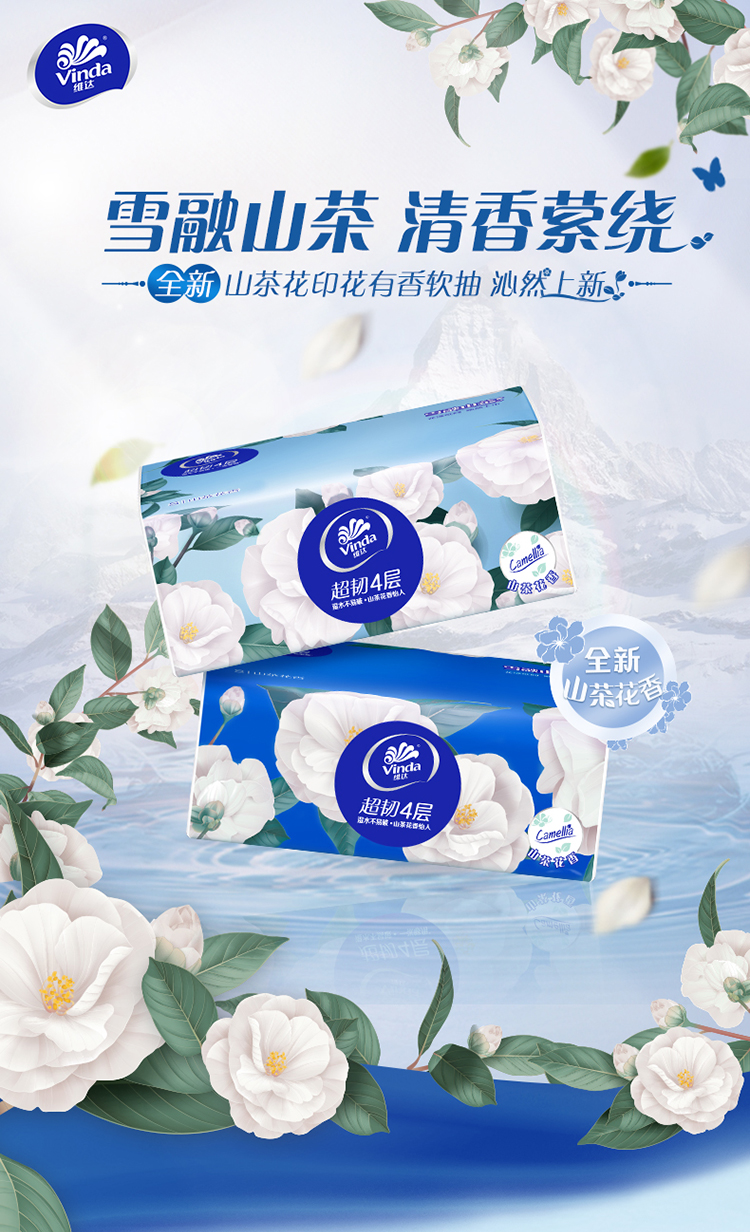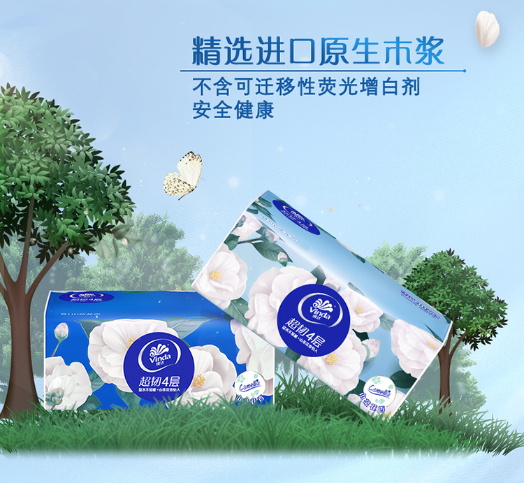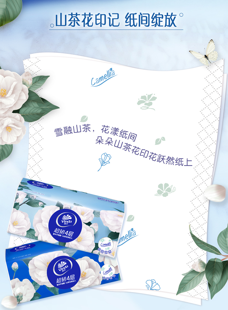 Vinda/维达山茶花香抽纸4层90抽8包*3提