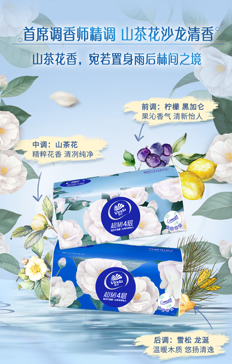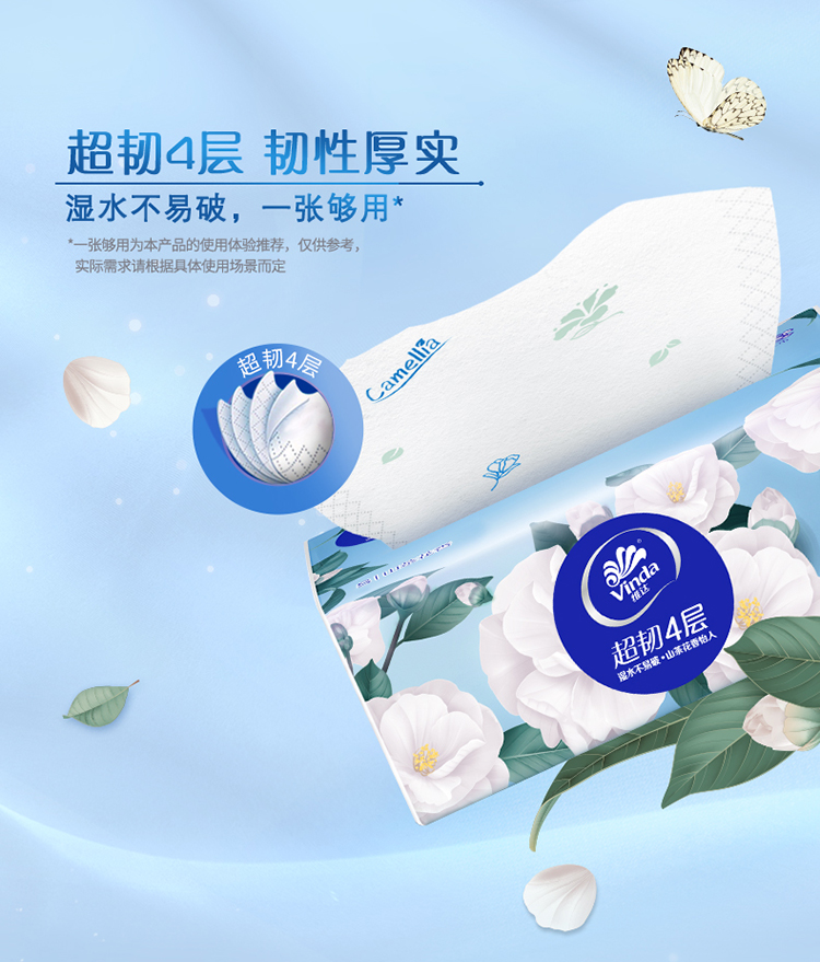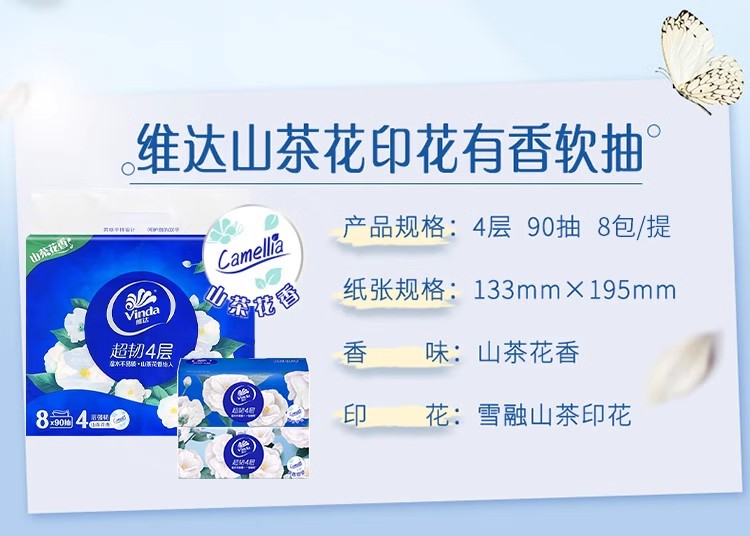 商品名称:Vinda/维达山茶花香抽纸4层90抽8包*3提